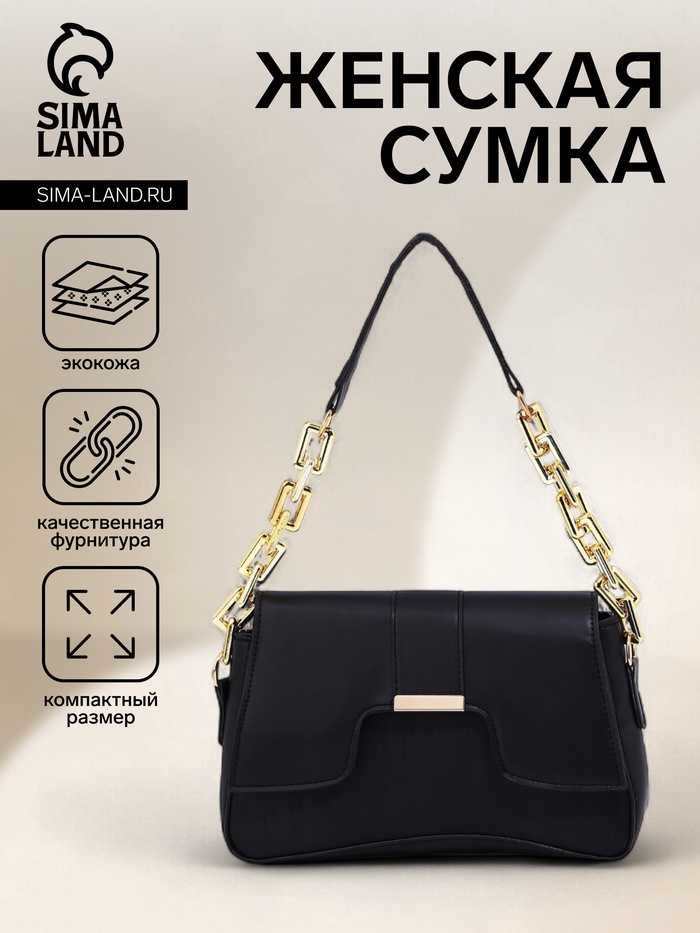 Сумка женская мессенджер на магните, 25×6×14 см, чёрный — Характеристики