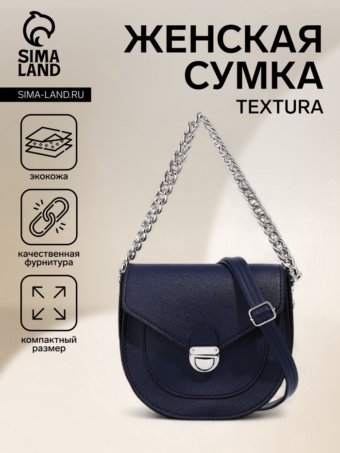 Сумка женская мессенджер TEXTURA на клапане, 17×10×18 см, синяя — Характеристики