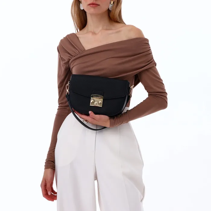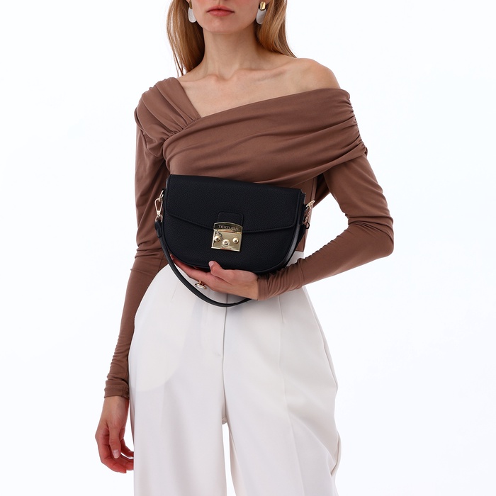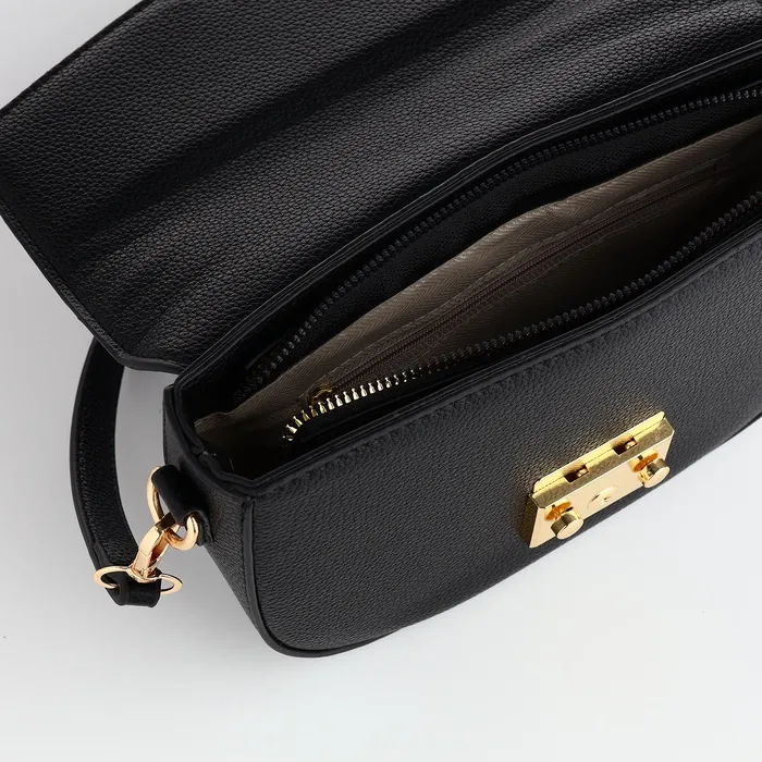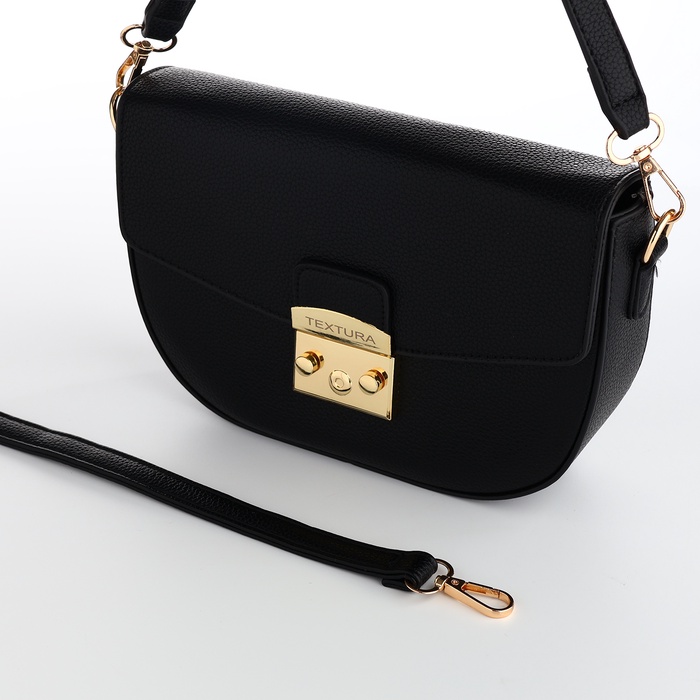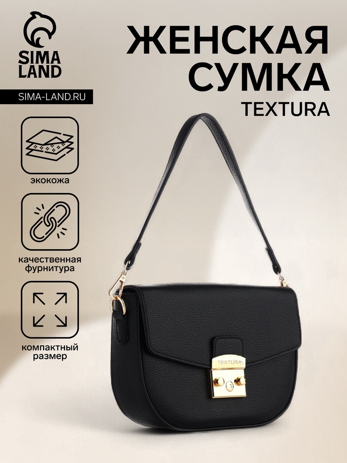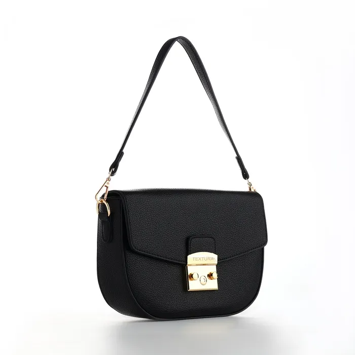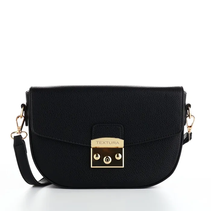 Сумка женская мессенджер TEXTURA на клапане, 23×6×15 см, чёрная — Характеристики