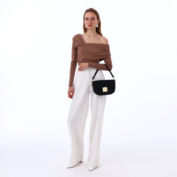 Сумка оснащена клапаном и металлической фурнитурой золотого цвета, что придаёт ей завершённый и элегантный вид. Внутри предусмотрен один удобный карман, куда можно положить самые необходимые вещи.