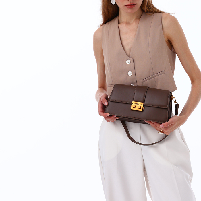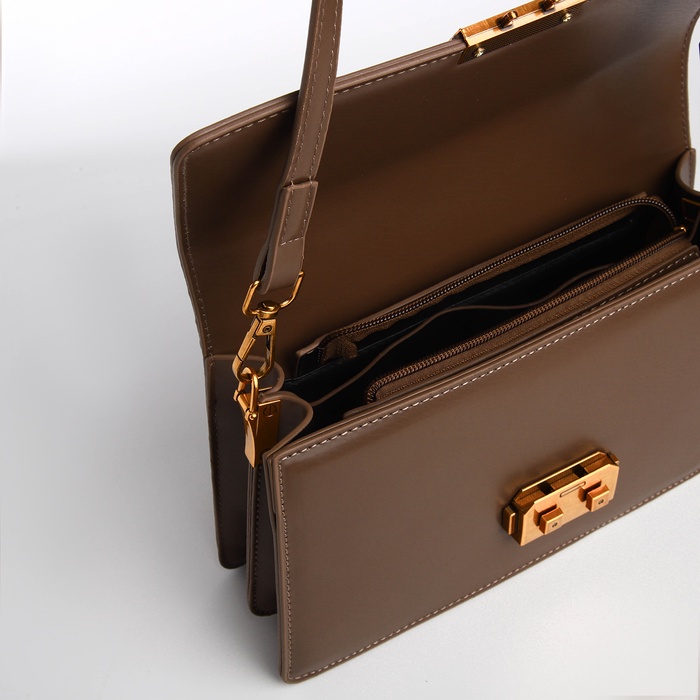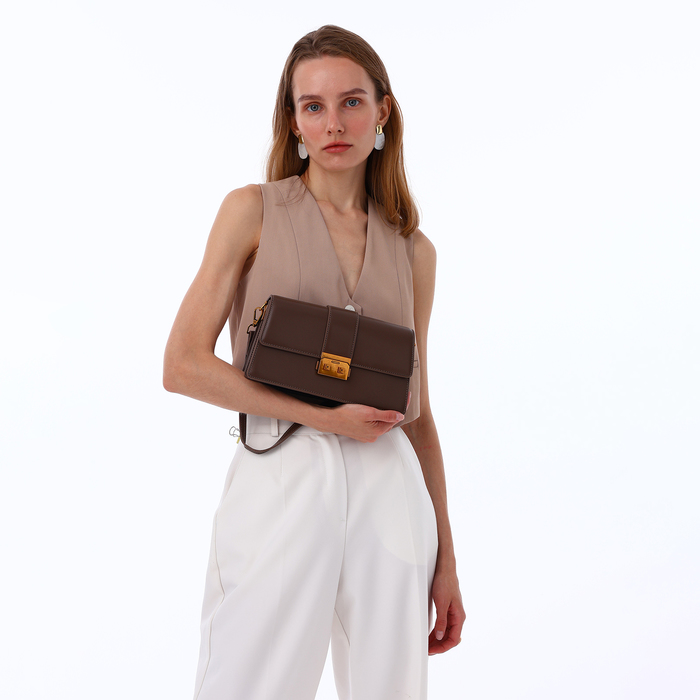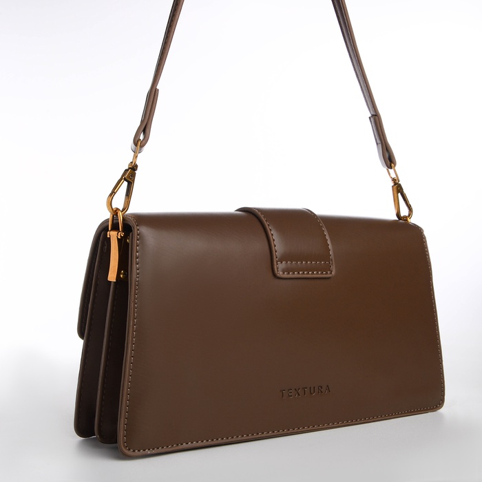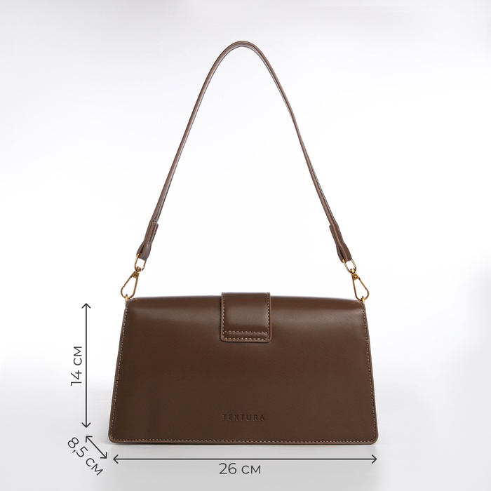 Сумка женская мессенджер TEXTURA на клапане, 26×8.5×14 см, коричневая — Характеристики