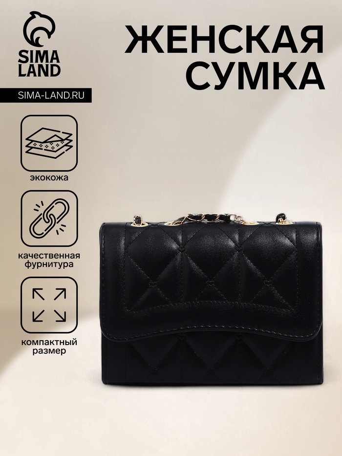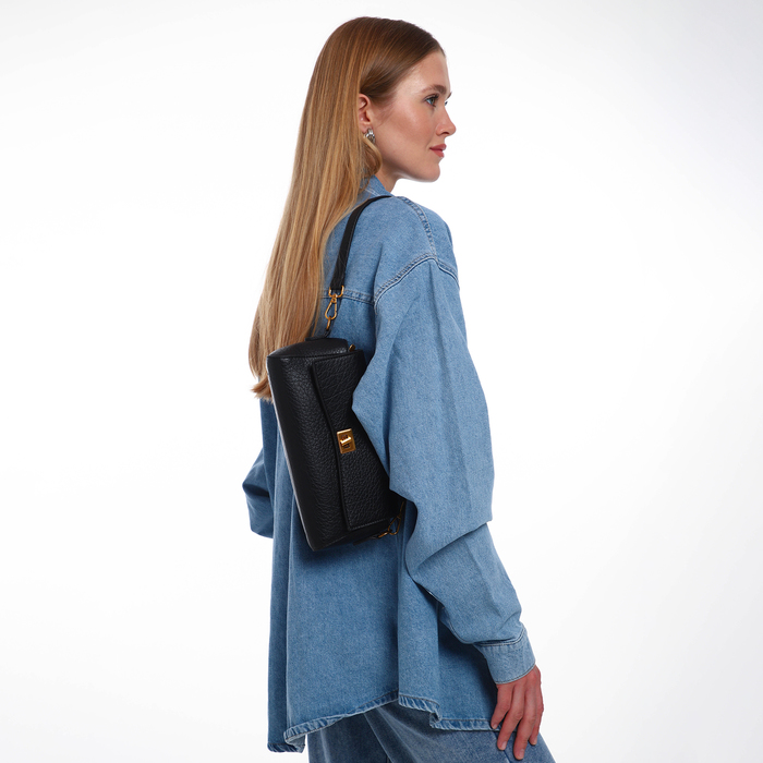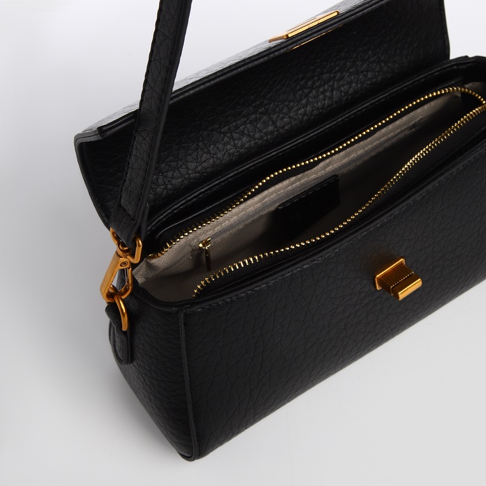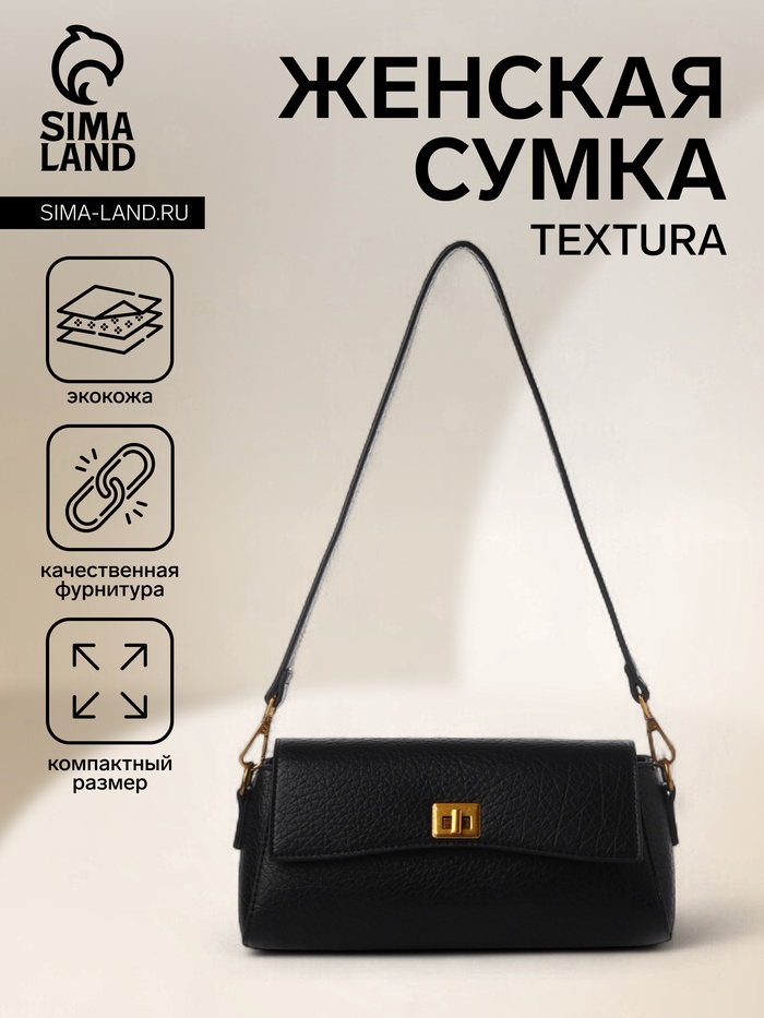 Сумка женская мессенджер TEXTURA на клапане, 26×9×12 см, чёрная — Характеристики