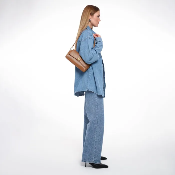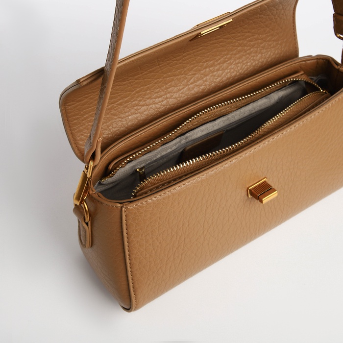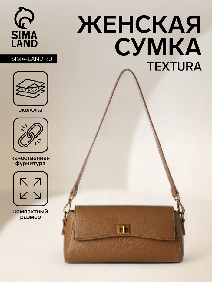 Сумка женская мессенджер TEXTURA на клапане, 26×9×12 см, коричневая — Характеристики