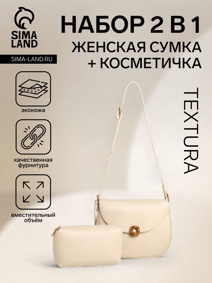 Сумка женская мессенджер TEXTURA на магните, с косметичкой, 28×4×20 см, молочная — Характеристики