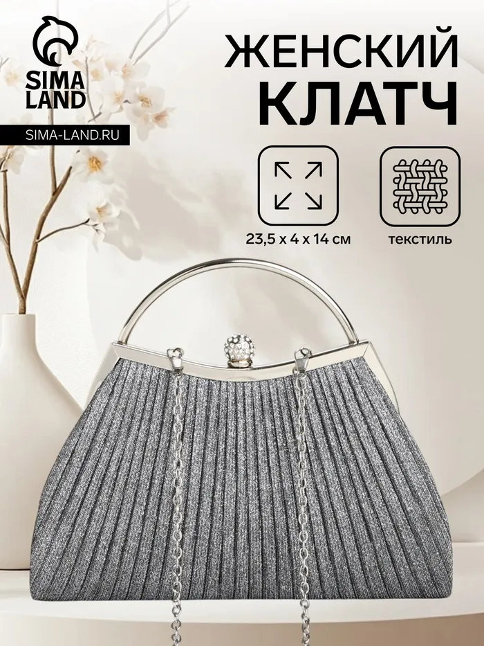 - Эффектный дизайн: Серебристый цвет и стильная цепочка делают сумочку настоящей находкой для вечернего выхода. Она гармонично дополнит любой праздничный наряд и привлечет внимание.
