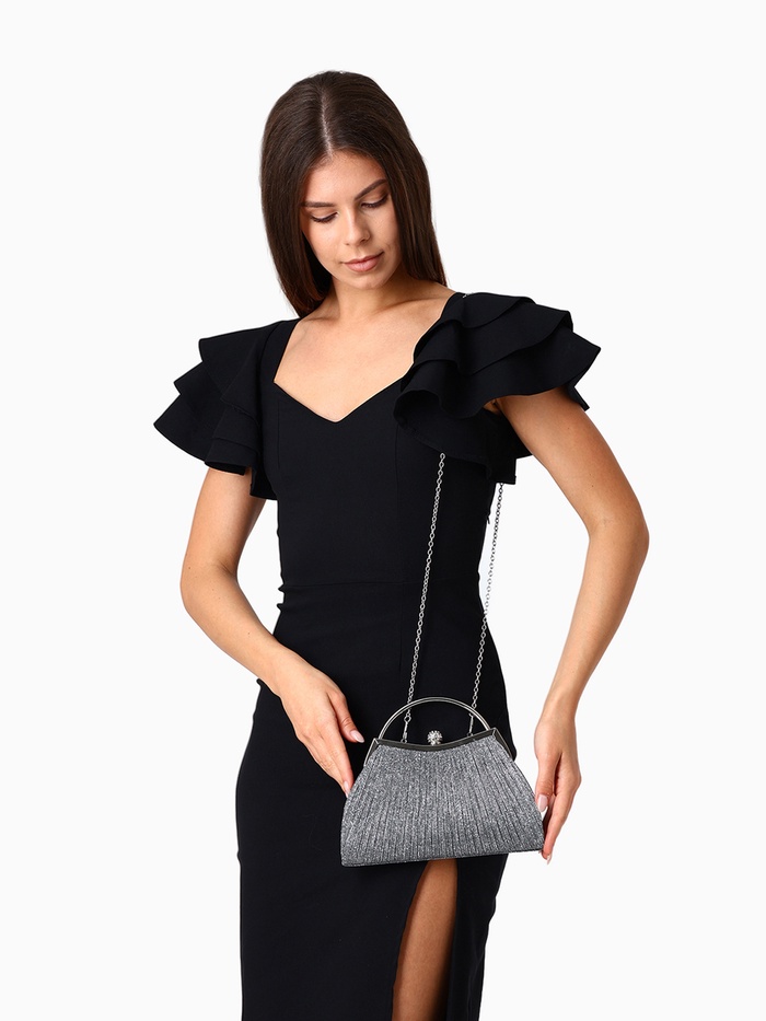 Свет и стиль в одном аксессуаре! Элегантная сумочка с фермуаром в серебре – ваш идеальный компаньон для особых случаев и праздничных мероприятий. Этот аксессуар сочетает в себе утонченное обаяние и продуманную функциональность.