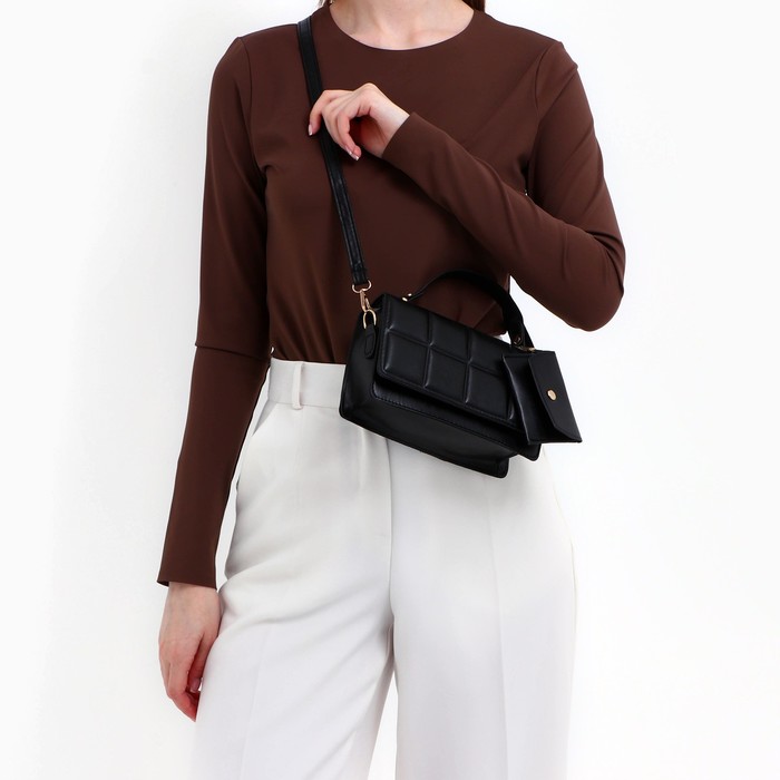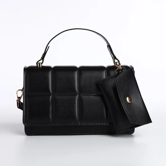 Сумка женская на клапане, с кошельком, 20×12×7 см, чёрная — Характеристики