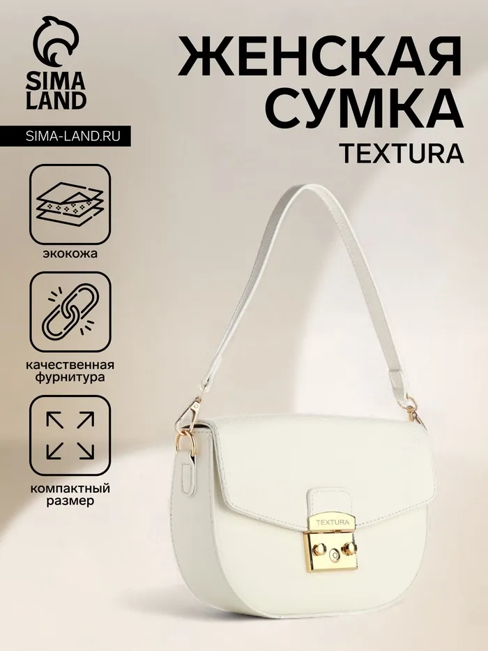 Сумка женская на клапане TEXTURA, маленький размер, цвет белый — Характеристики