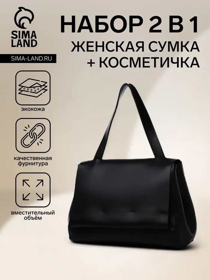 Сумка женская на магните, косметичка, цвет чёрный — Характеристики