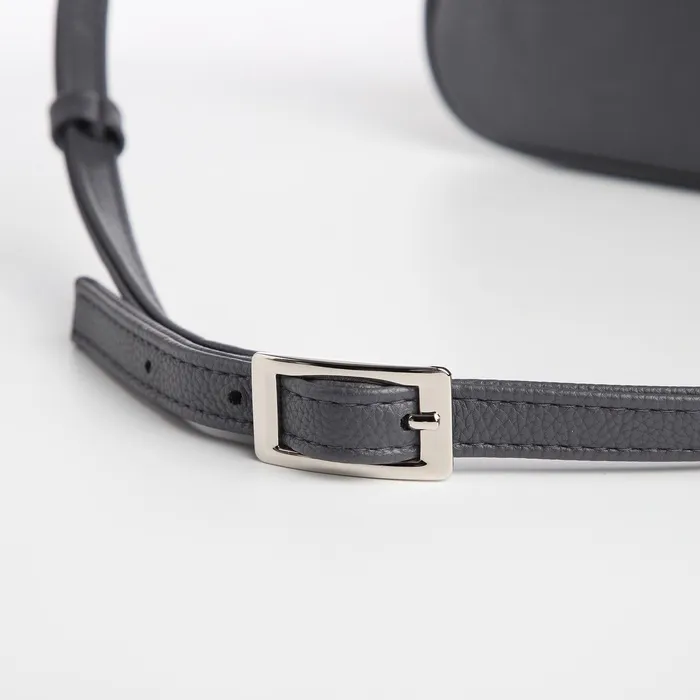 Сумка выполнена в изысканном сером цвете с серебристой фурнитурой, подчеркивающей её современный дизайн.