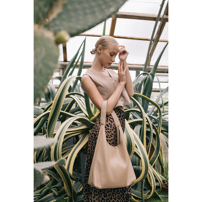 - Универсальность: бежевый цвет подходит к любому наряду, будь то деловой костюм или повседневный образ, а возможность носить на плече или в руке делает сумку максимально удобной.