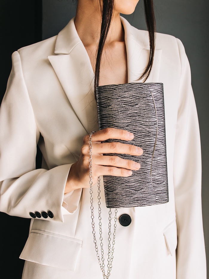 - Элегантность в деталях: Серебряная фурнитура придает сумочке утонченный вид. Цепочка, как элемент дизайна, добавляет роскоши и привлекает внимание.