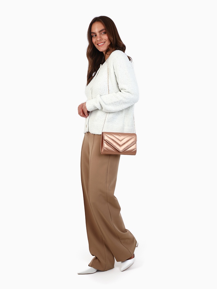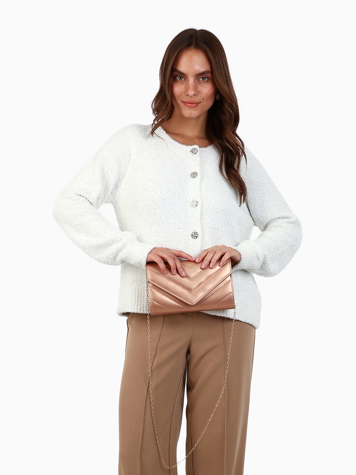 Элегантность в каждом мгновении Объемная сумочка с магнитной застежкой цвета бронзы - это утонченный предмет гардероба, который станет изюминкой вашего образа. Подходит для любых погодных условий, подчеркивая вашу индивидуальность и стиль.