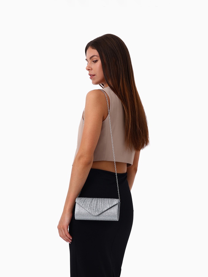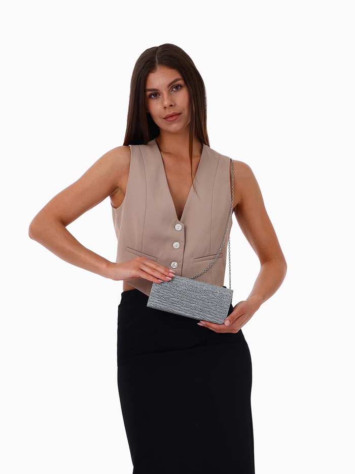 - Современная отделка: Созданная из текстиля с металлическим блеском, сумочка обладает изысканным и универсальным дизайном, который подойдёт как для вечернего выхода, так и для вечеринок.