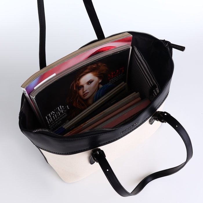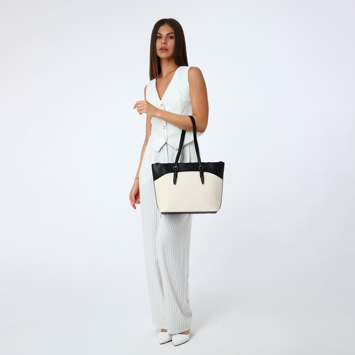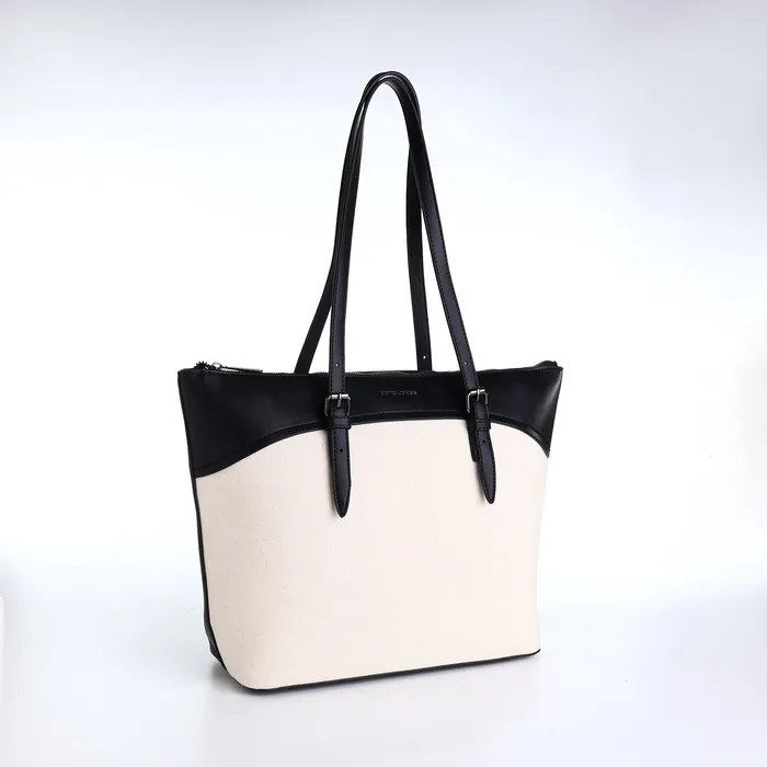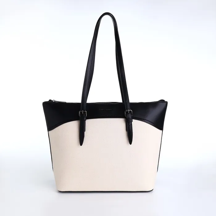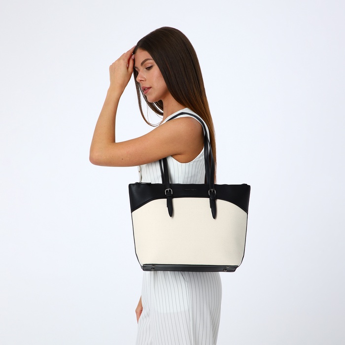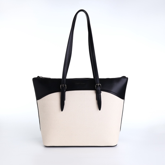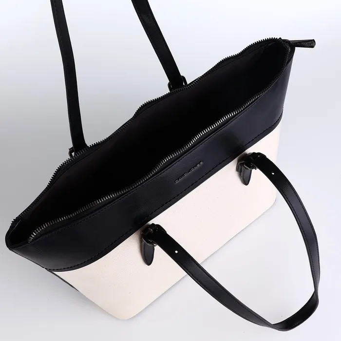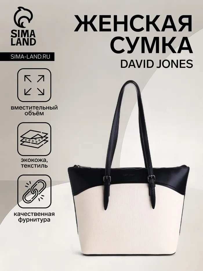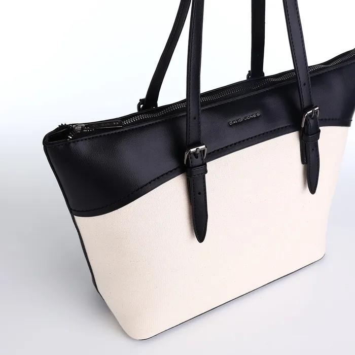 Сумка женская на молнии David Jones, цвет бежевый/чёрный — Характеристики
