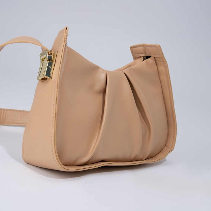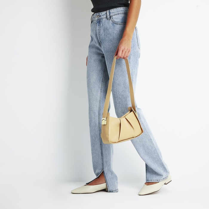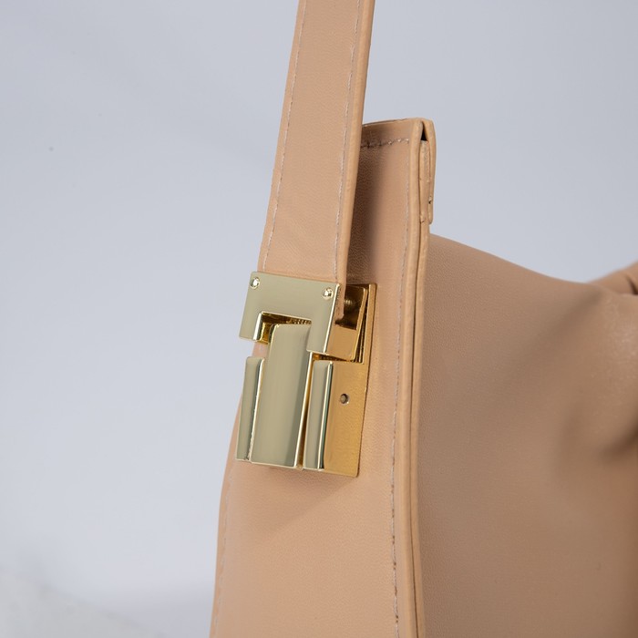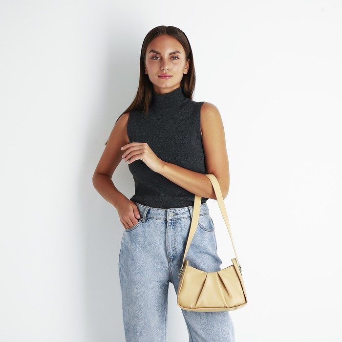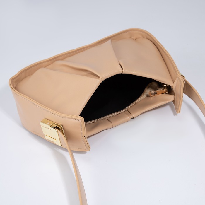 Элегантная бежевая сумочка с молнией — идеальный выбор для того, чтобы дополнить свой весенний или летний образ. Плавные линии и золотая фурнитура этой дамской сумки багет подчеркивают её стиль, создавая впечатление классической роскоши. Выполненная из искусственной кожи, она способствует элегантному обрамлению вашего гардероба и подчёркивает вашу женственность.
