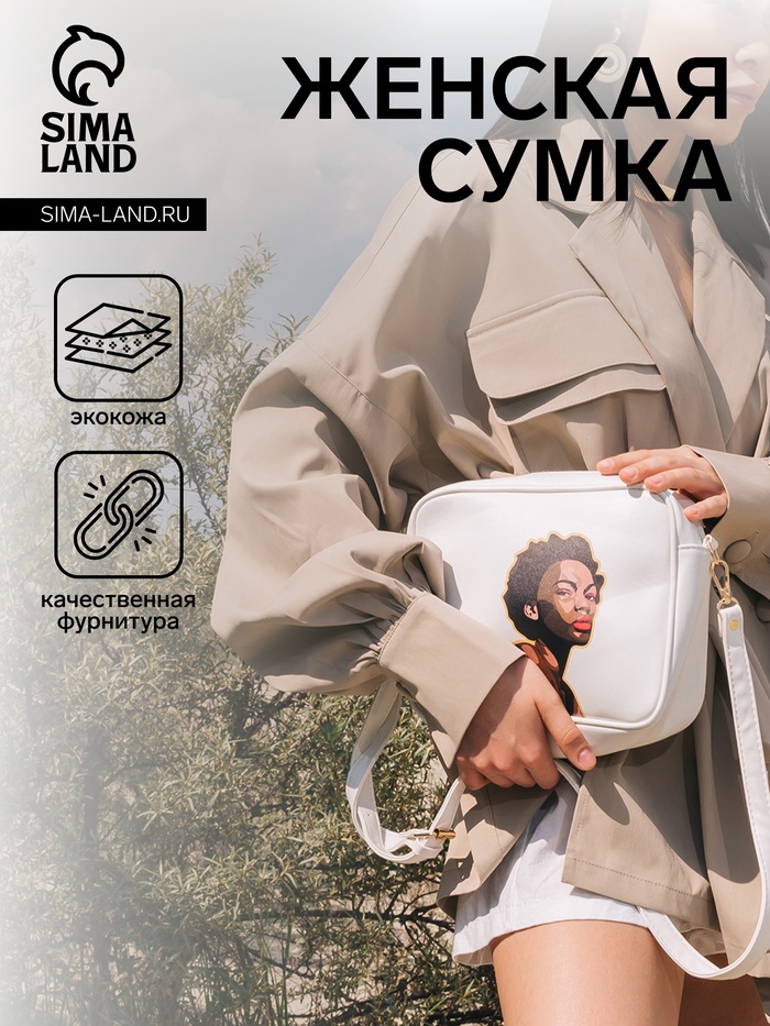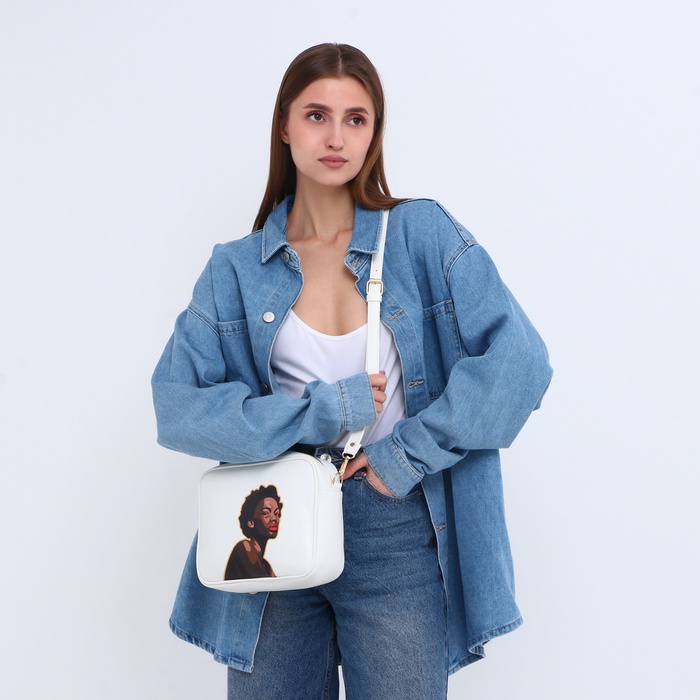 Сумка женская на молнии TEXTURA, 22×8×17 см, с цветным принтом, белая — Характеристики