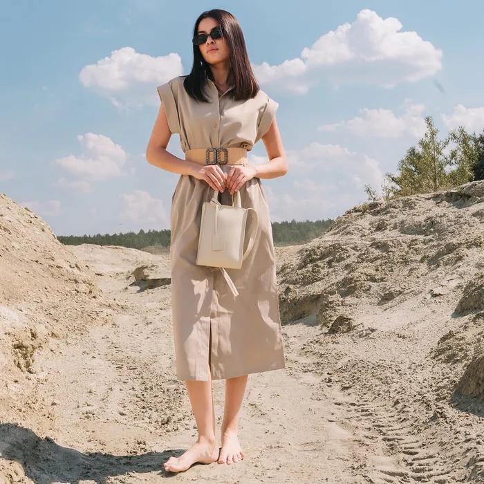- Всесезонное использование: нейтральный бежевый цвет гармонирует с любым образом, а искусственная кожа устойчива к внешним воздействиям.