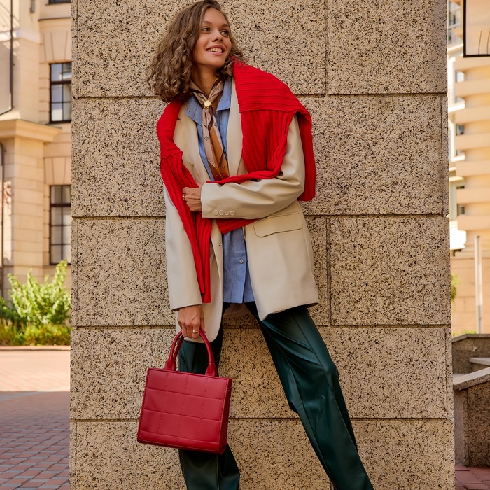 Сумка женская на молнии TEXTURA, маленький размер, цвет красный — Характеристики