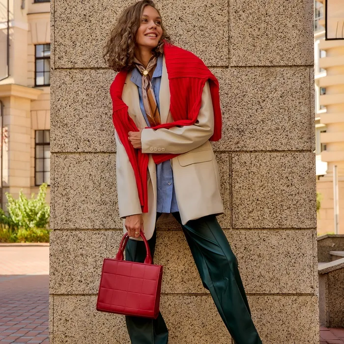 Серая женская сумка-тоут — это универсальный аксессуар для повседневного использования, который сочетает в себе стиль и функциональность. Её классический дизайн и нейтральный цвет делают её идеальным выбором для работы, прогулок или деловых встреч. Сумка выполнена из качественного материала, что подчеркивает её долговечность и практичность.