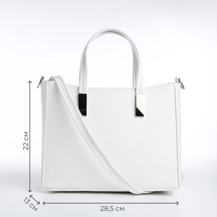 При своих параметрах 28,5 x 22 x 13 см «Белая сумка-тоут» идеально сбалансирована для женщин, ценящих функциональность и эстетику. Эта сумка подчеркнет вашу индивидуальность и дополнит ваш ежедневный образ. Удовольствие от качественного аксессуара, который становится частью вашего самовыражения.