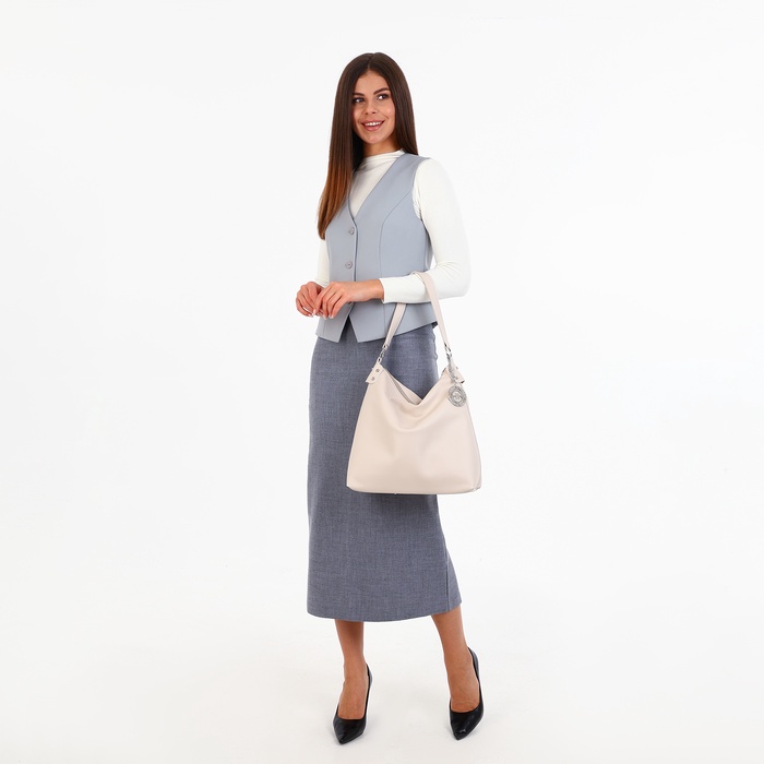 - Элегантный дизайн: бежевый цвет и изысканные детали делают сумку универсальным аксессуаром, подходящим для любого наряда.