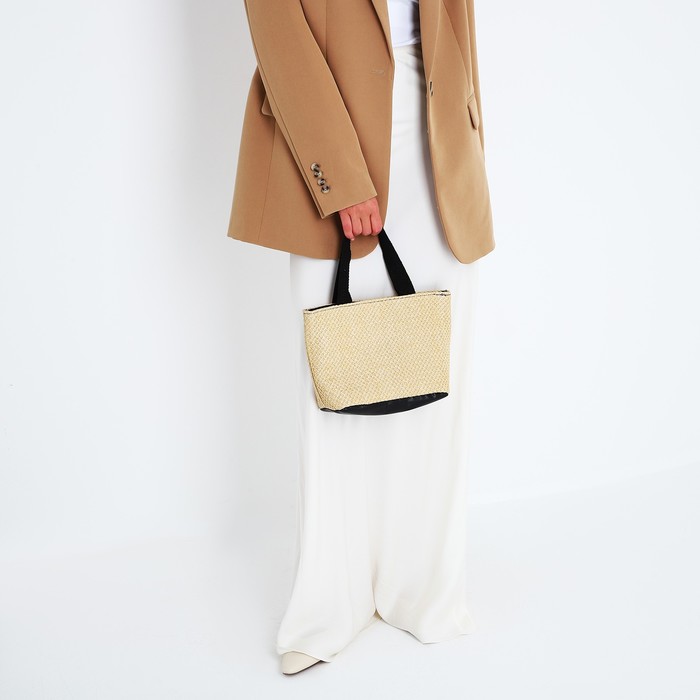 Сумка женская на молнии, цвет бежевый/чёрный — Характеристики