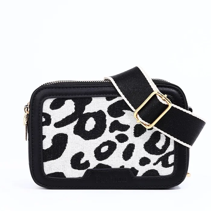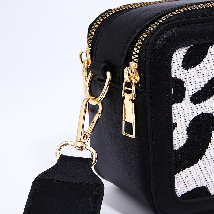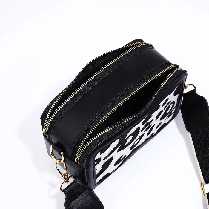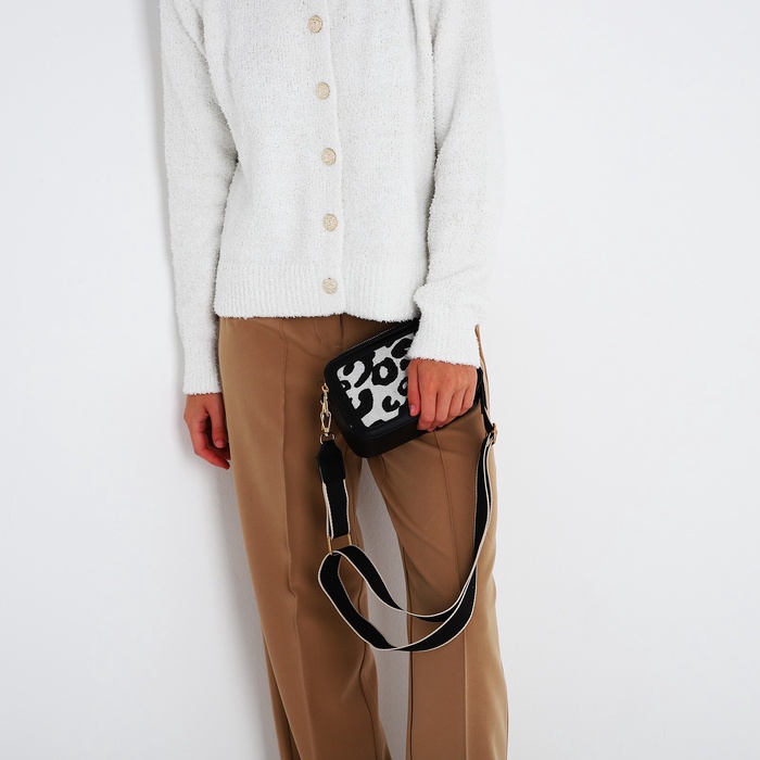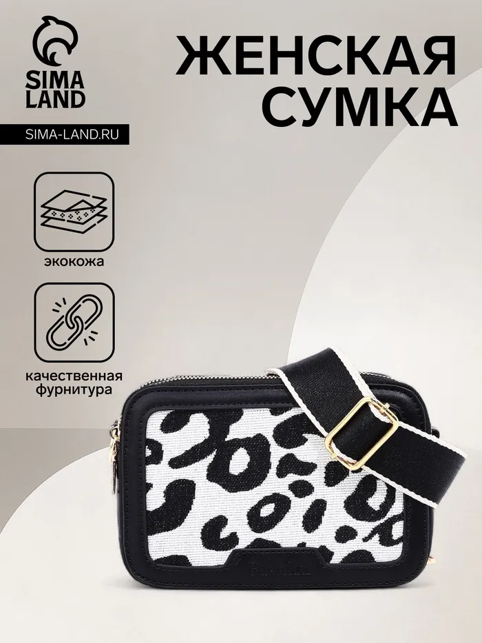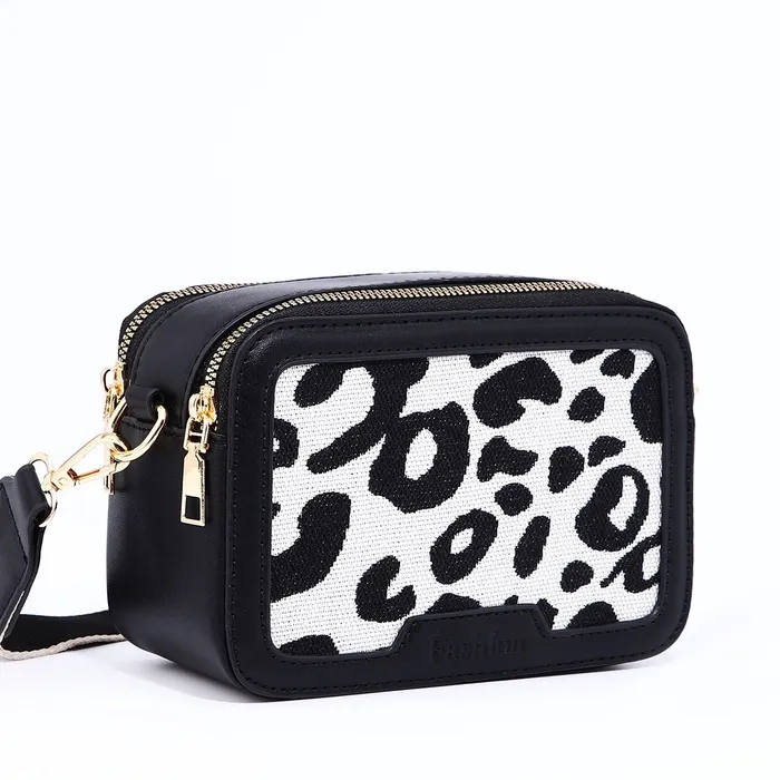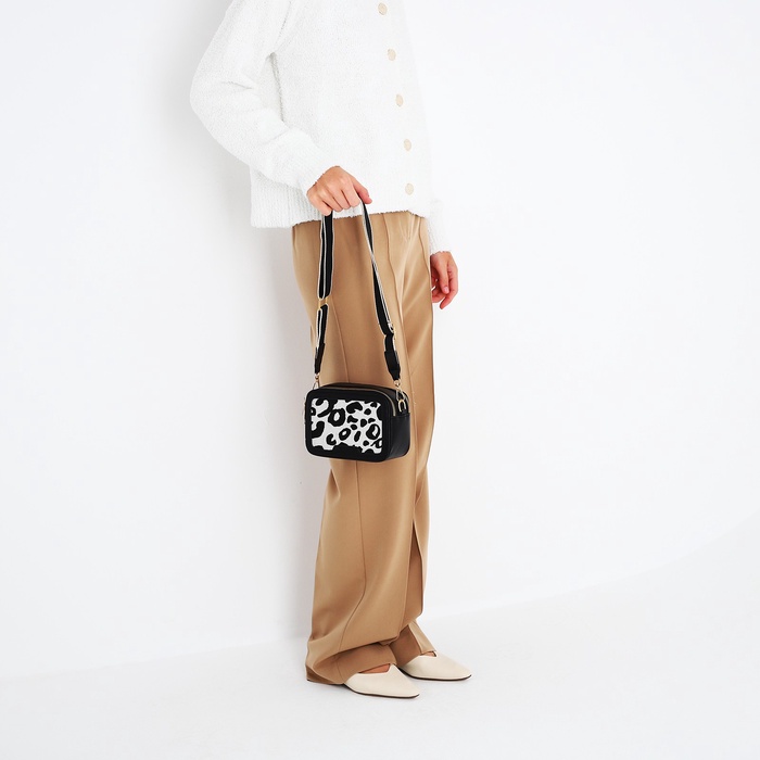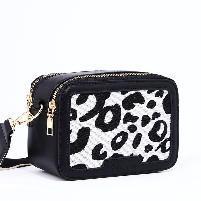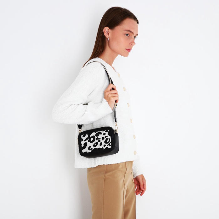 Сумка женская на молнии, цвет чёрный/белый/леопард — Характеристики