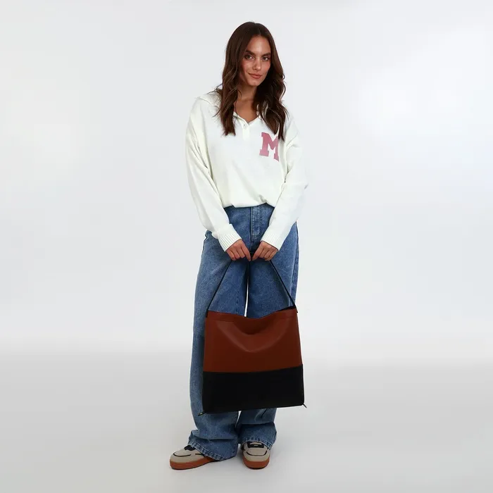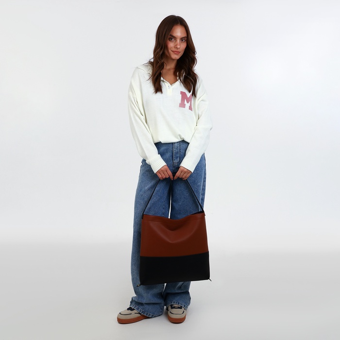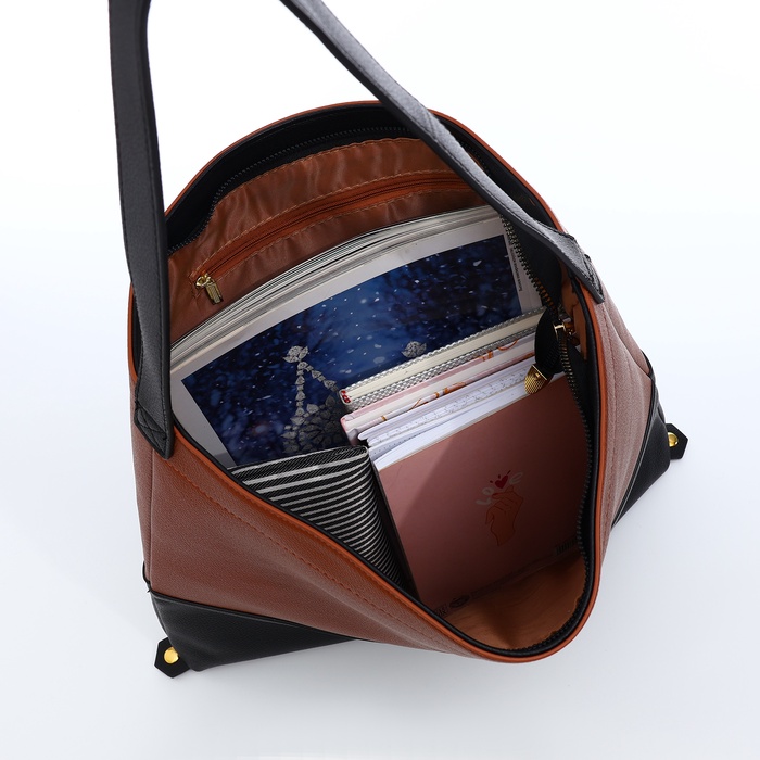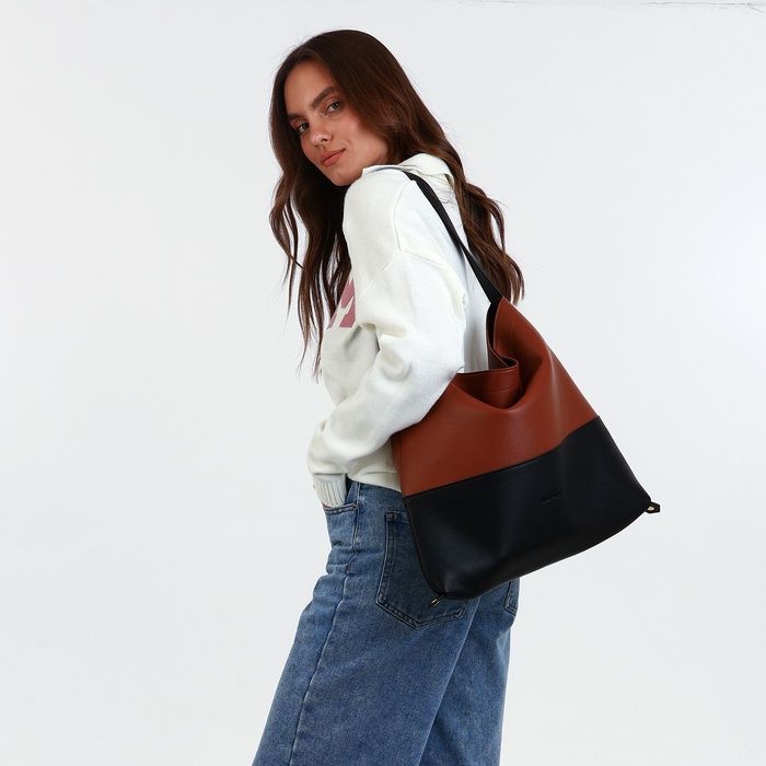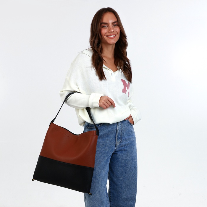 Сумка женская на молнии, цвет коричневый/чёрный — Характеристики