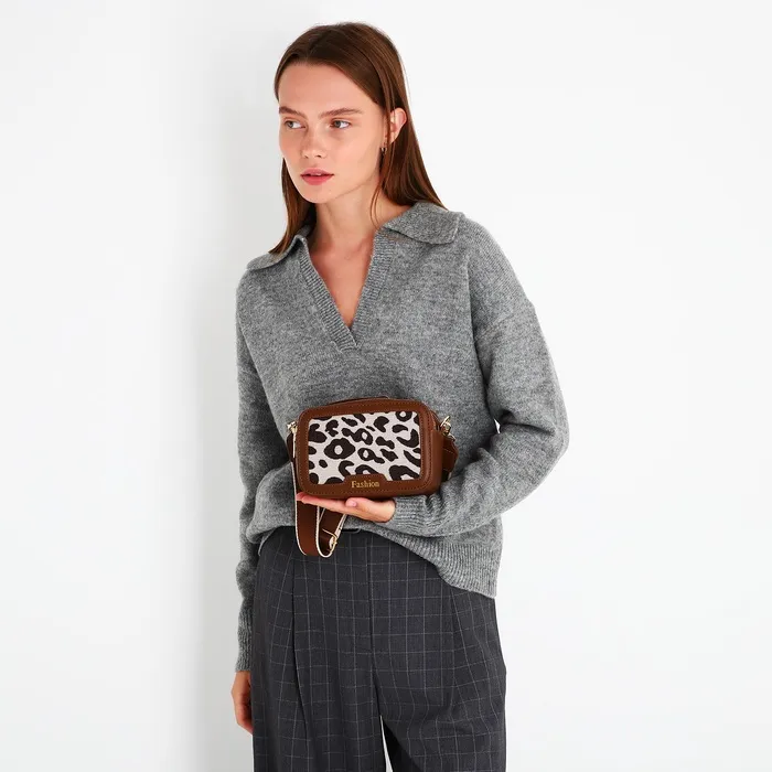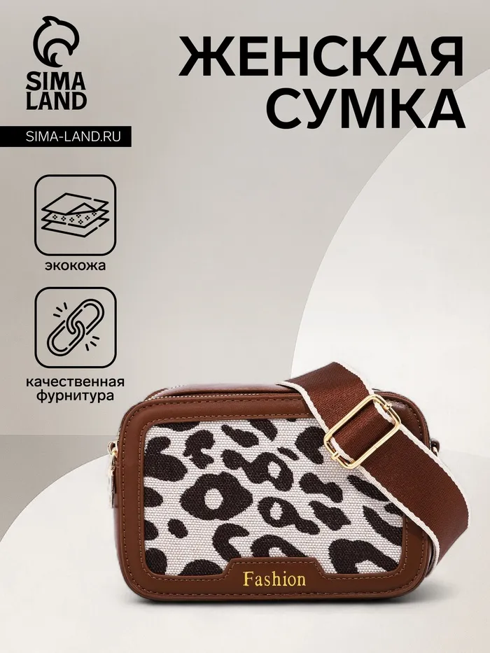 Сумка женская на молнии, цвет леопард/коричневый — Характеристики