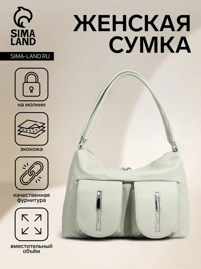 Сумка женская на молнии, цвет светло-зелёный — Характеристики
