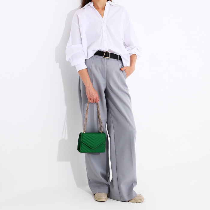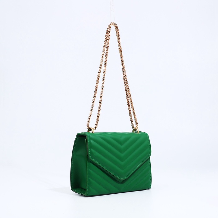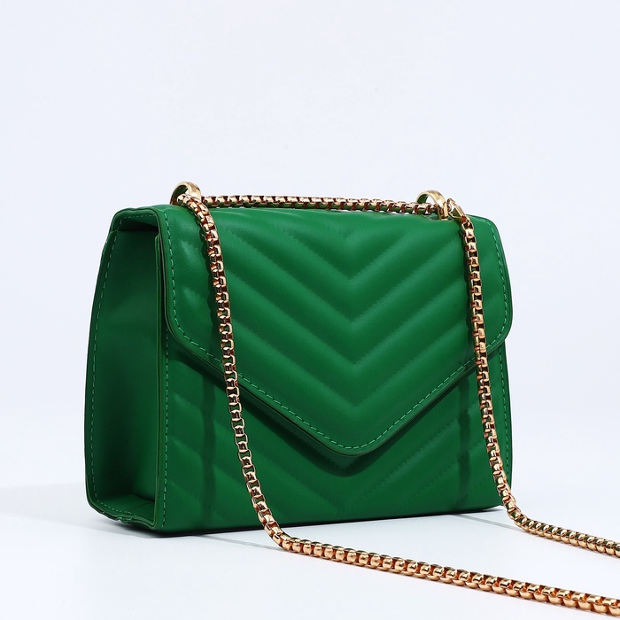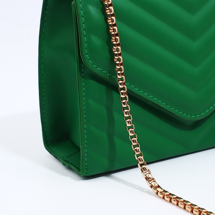 Сумка женская, на цепочке, маленькая, стёжка. Зелёная — Характеристики