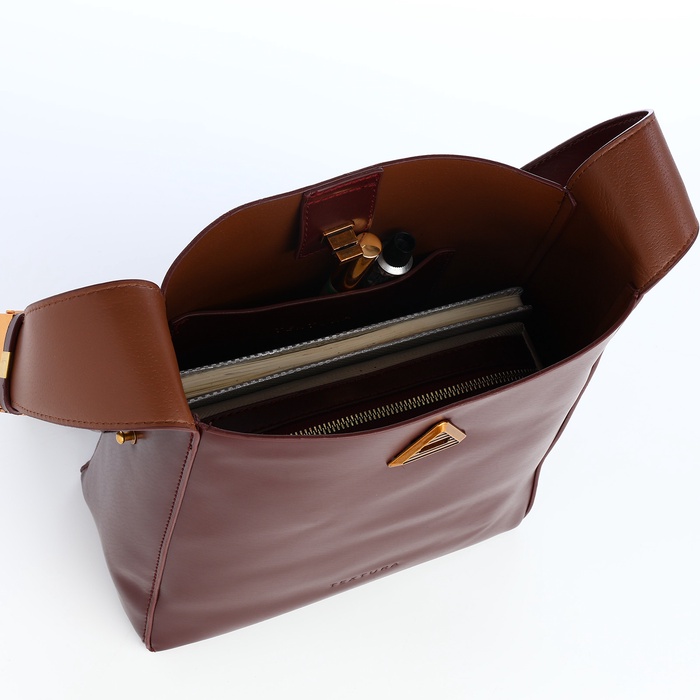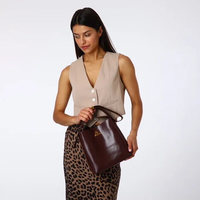 • Элегантный дизайн: классический коричневый цвет и бронзовая фурнитура придают сумке утончённый вид, который идеально сочетается с любым гардеробом.