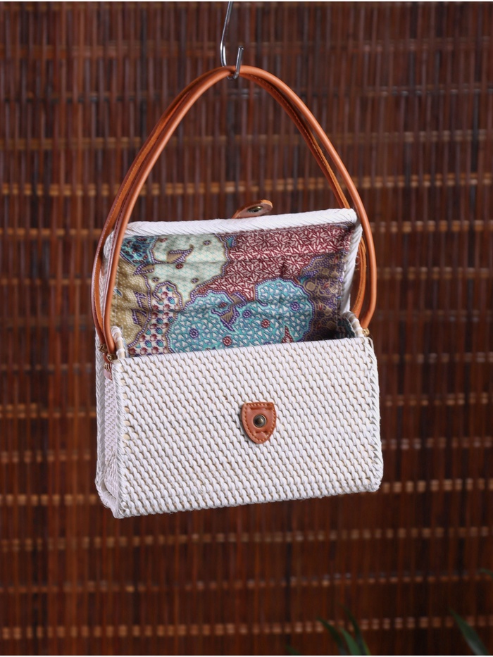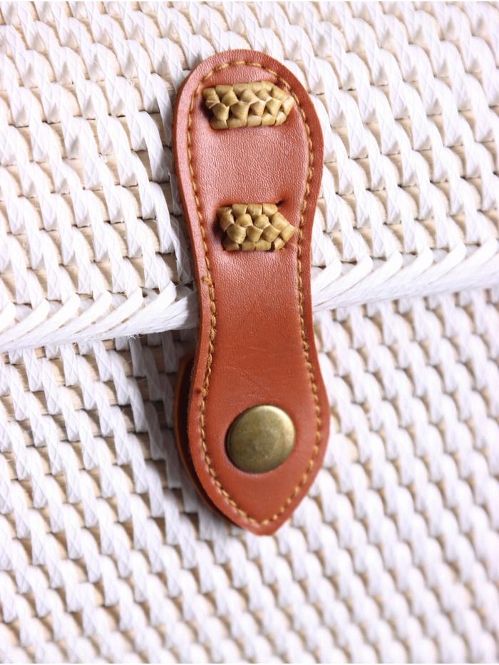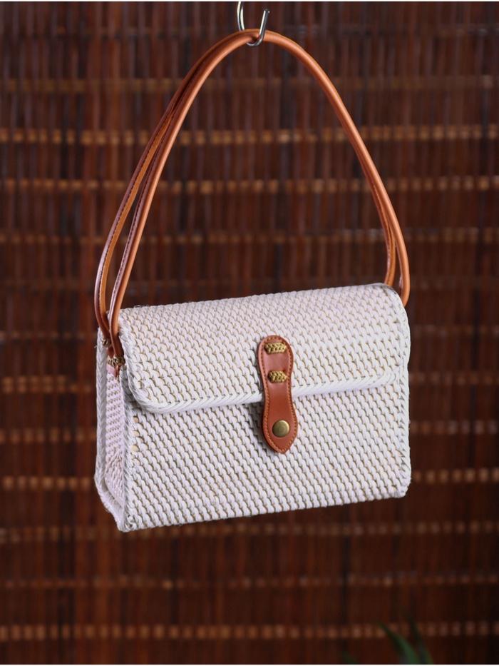 Элегантная плетёная сумка из натурального ротанга — идеальный аксессуар для летнего отдыха и повседневного образа. Её классический дизайн в белом цвете с коричневой фурнитурой подчеркнёт ваш стиль и добавит легкости любому наряду.