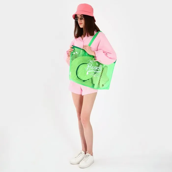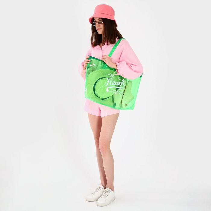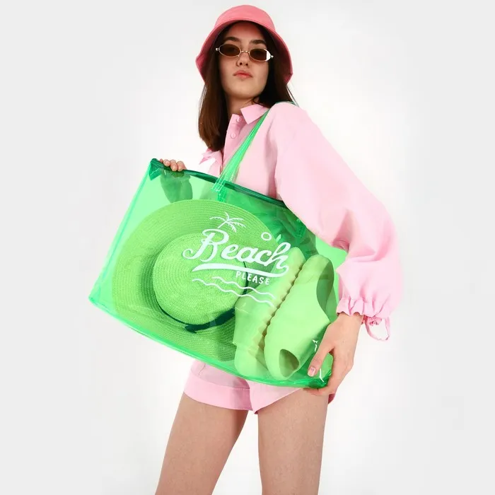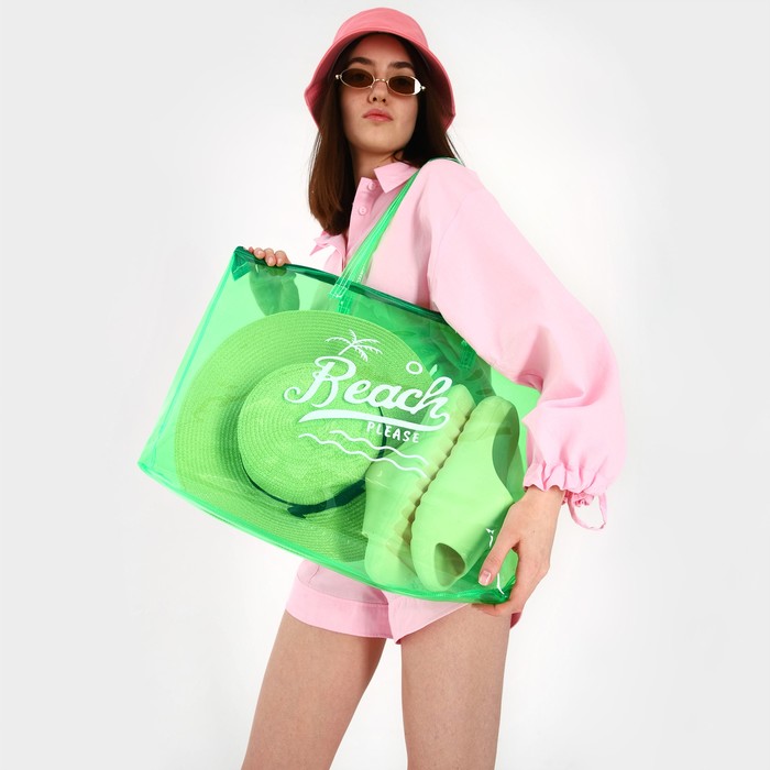 Сумка женская пляжная Beach please, 50×35×11 см, зелёная — Характеристики