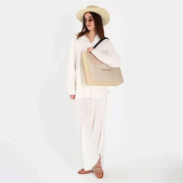 Сумка женская пляжная Cherie, 41.5×34×12 см, бежевая — Характеристики