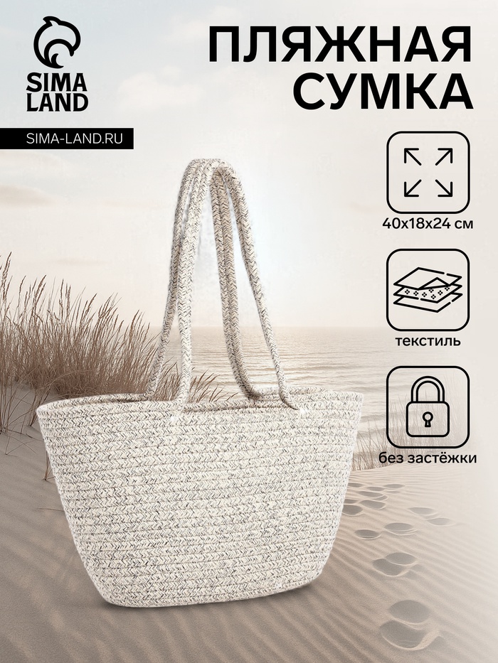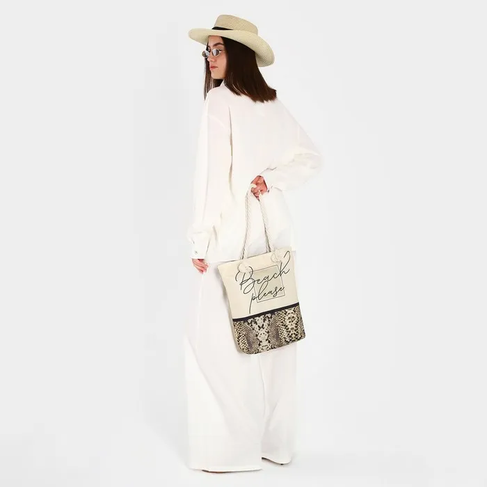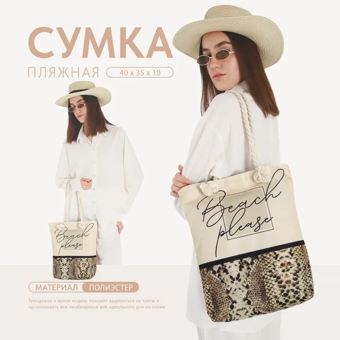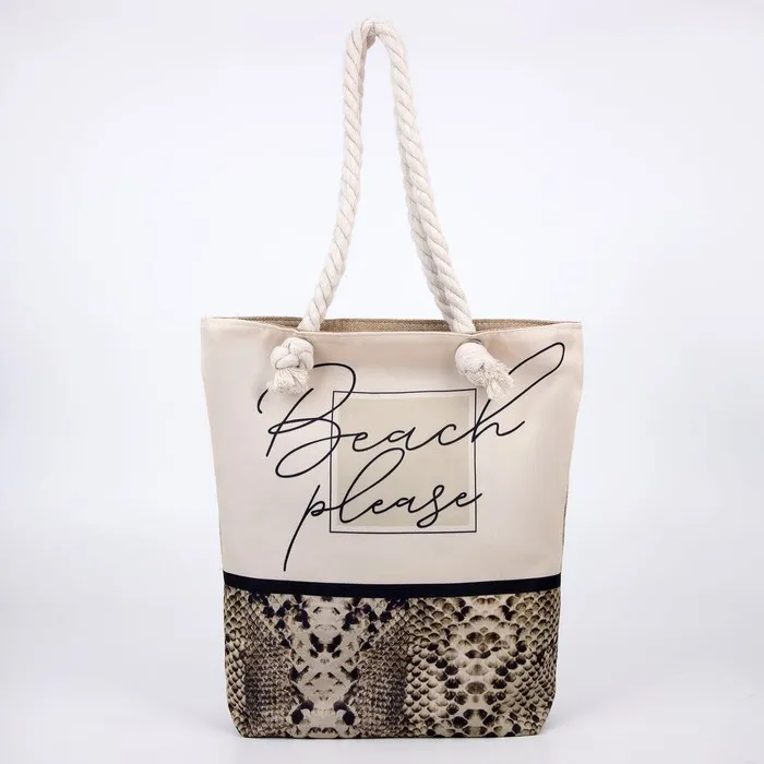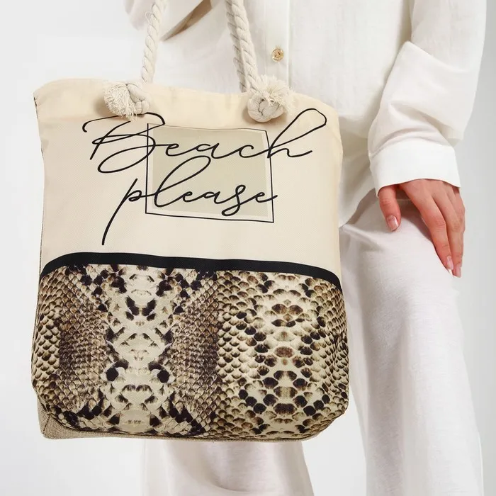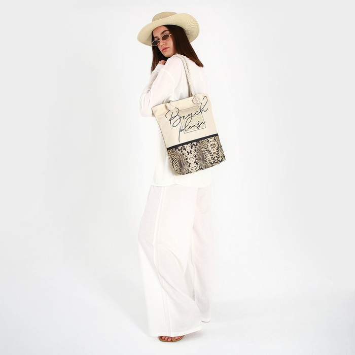 Сумка женская пляжная на молнии Pleage, бежевая — Характеристики