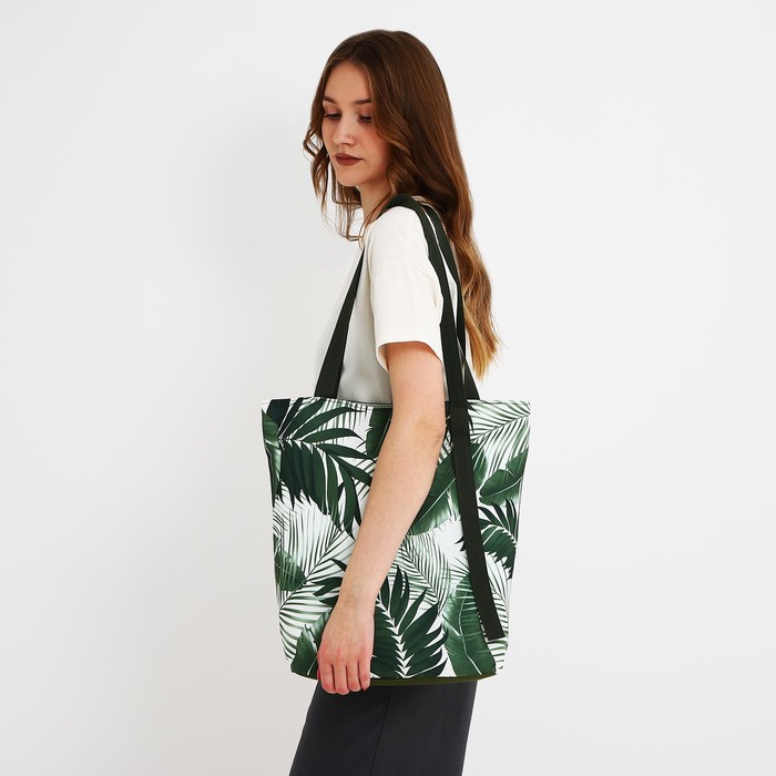 Сумка женская пляжная «Тропики», 39×32 см, оливковая