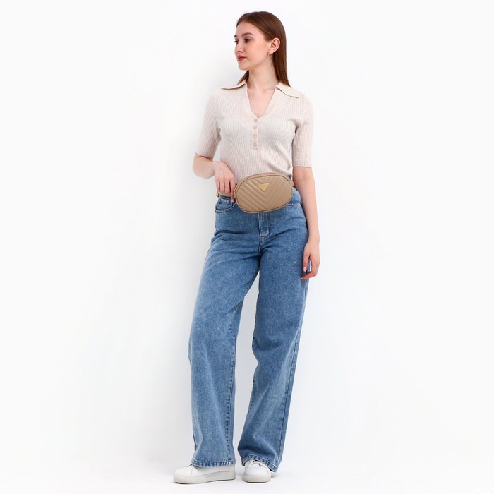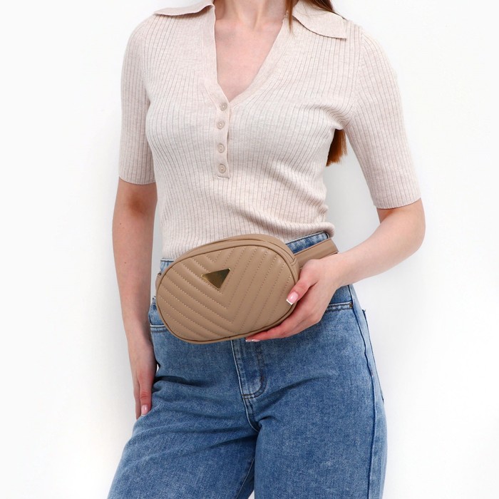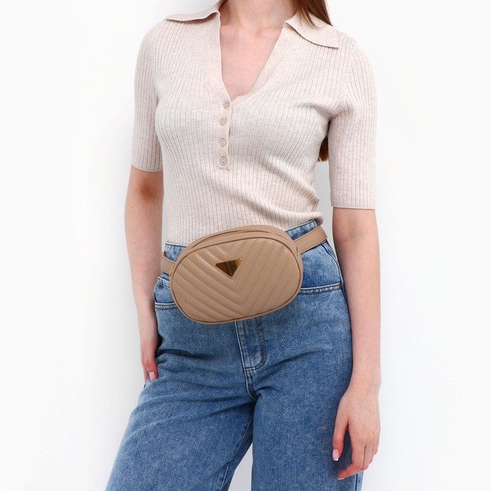 Сумка женская поясная с прострочкой 20×13×6 см, бежевая — Характеристики