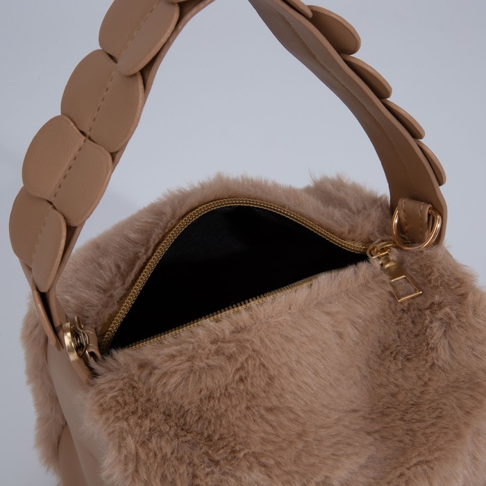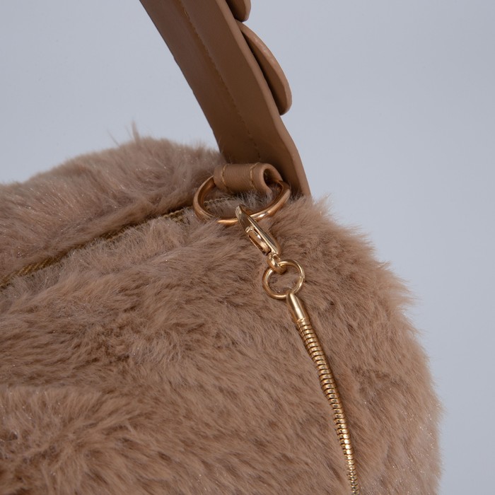 Сумка женская, с мехом, с цепочкой, на молнии, коричневая — Характеристики