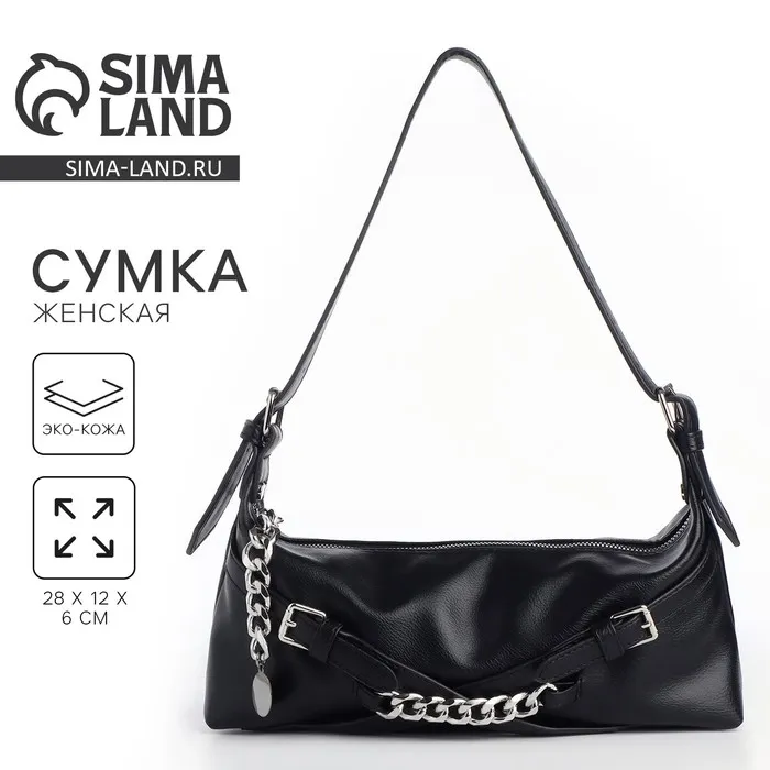 Сумка женская с цепями, 28×12×6 см, чёрная — Характеристики