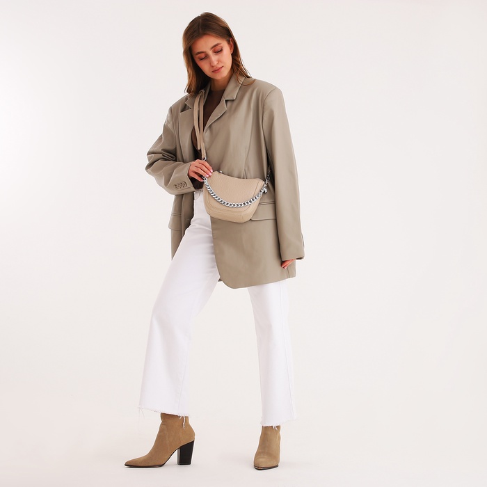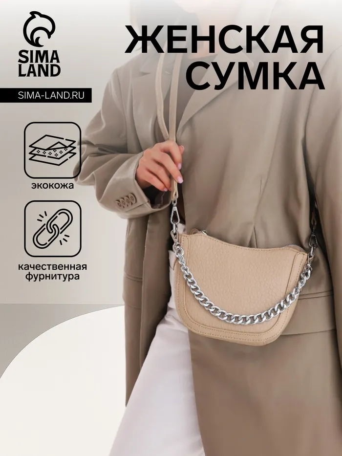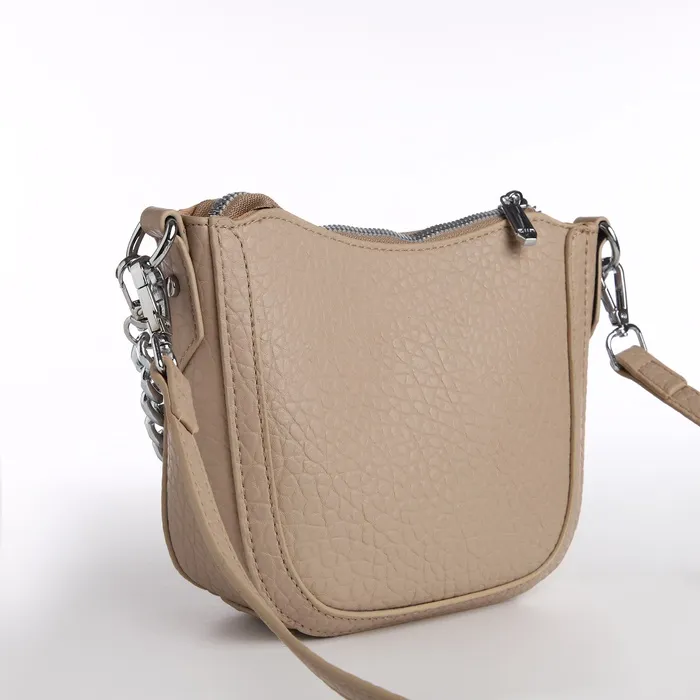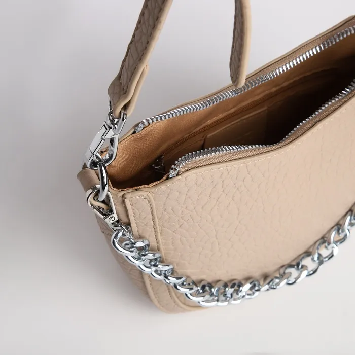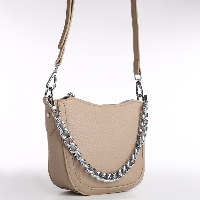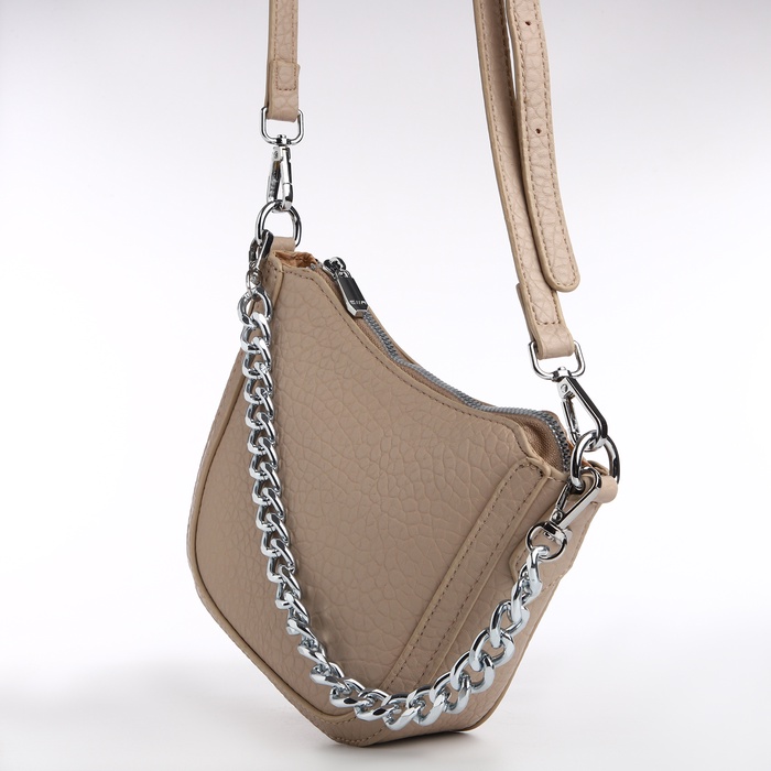 Сумка женская, с цепочкой и длинным ремнём, на молнии, бежевая — Характеристики