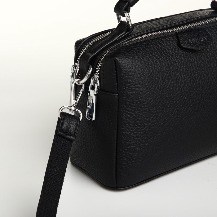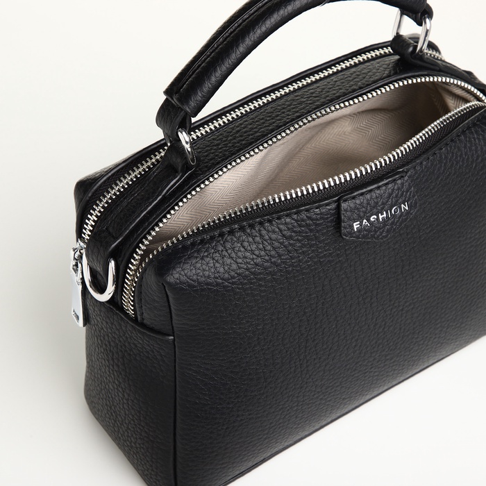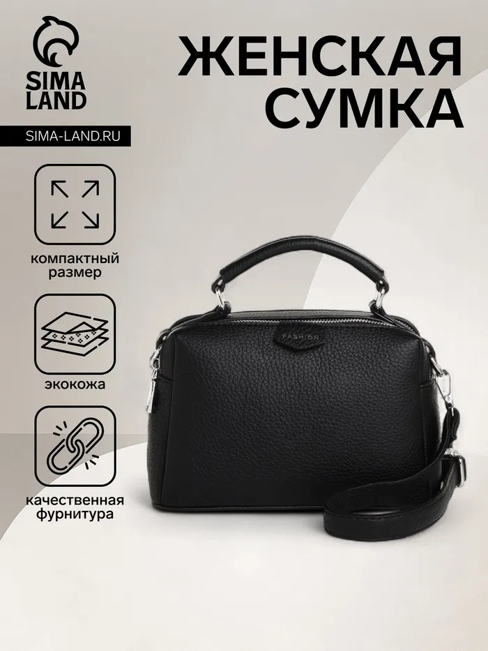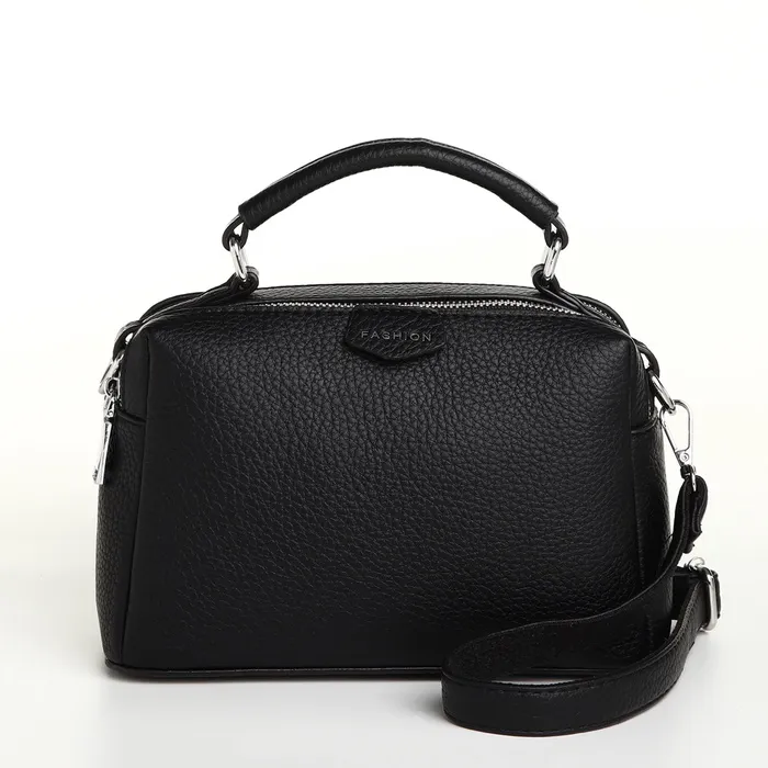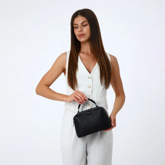 Сумка женская саквояж на молнии, 23×14×10 см, чёрная — Характеристики