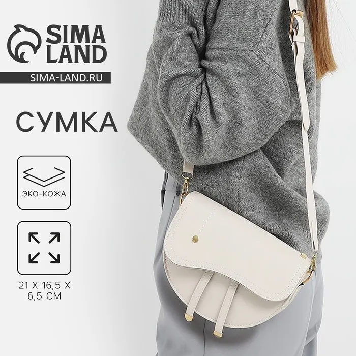 Сумка женская седло на плечо, отдел на молнии, 21×16.5×6.5 см, белая — Характеристики