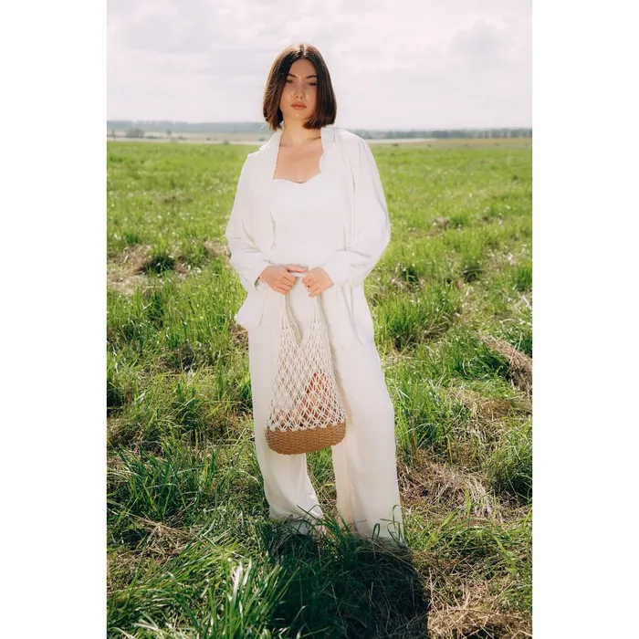 Хозяйственная сумка ручного плетения — это стильная альтернатива одноразовым полиэтиленовым пакетам. Легко помещается на плечо, предоставляя свободу движений и комфорт при использовании. Универсальный аксессуар, который пригодится в быту. Сумка выполнена из экологически чистых материалов, что делает её безопасной для здоровья. Благодаря стильному дизайну и удобной ручке, сумка станет отличным дополнением к вашему образу.