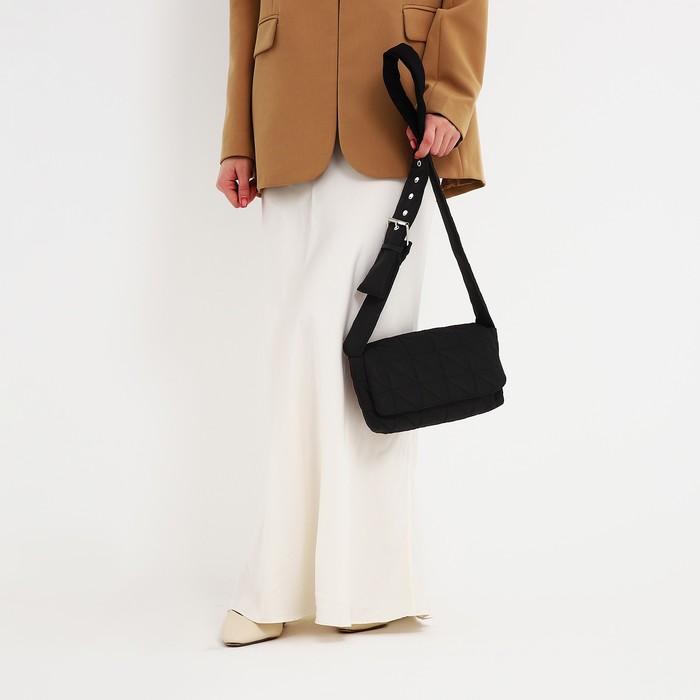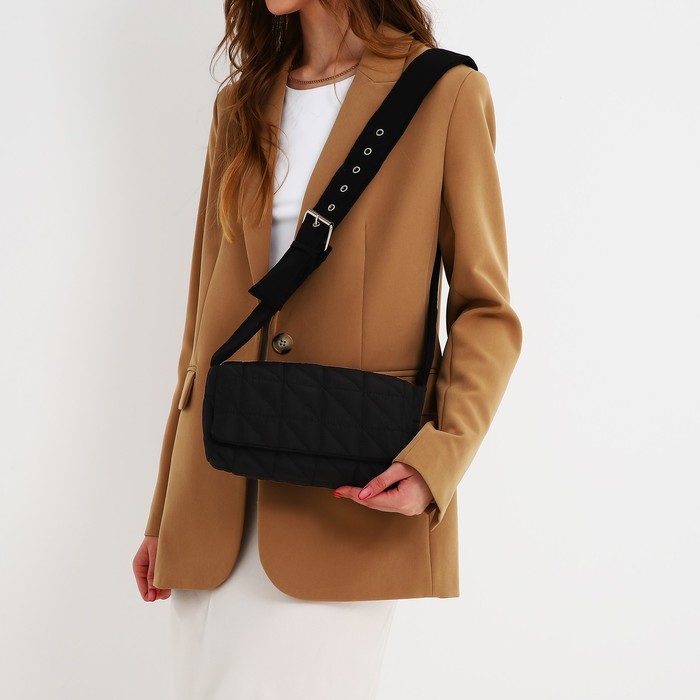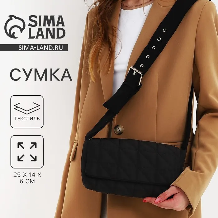 Сумка женская стеганная на плечо, отдел на молнии, 25×14×6 см, чёрная — Характеристики