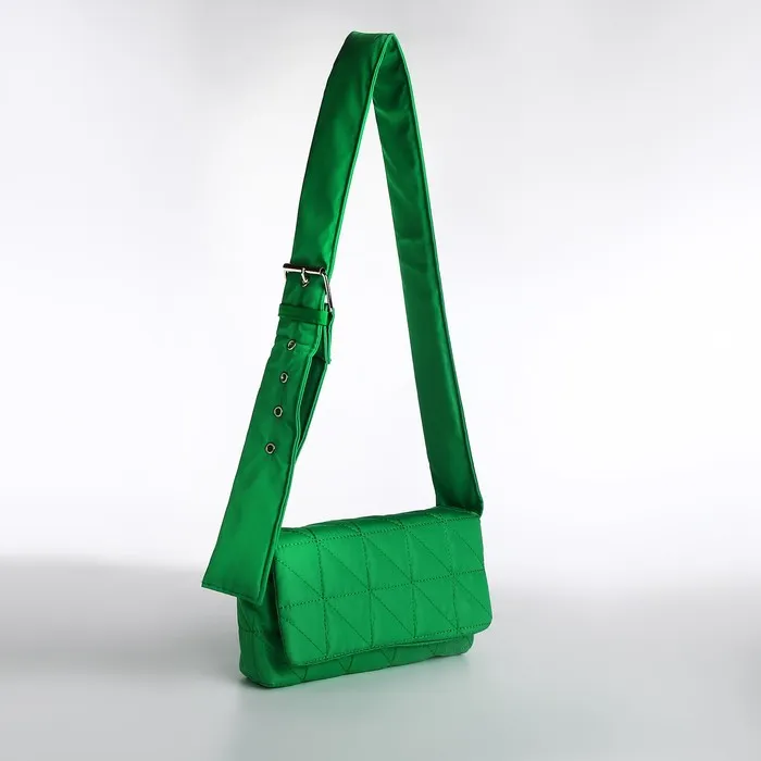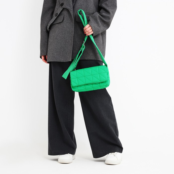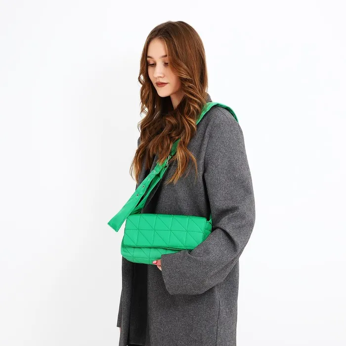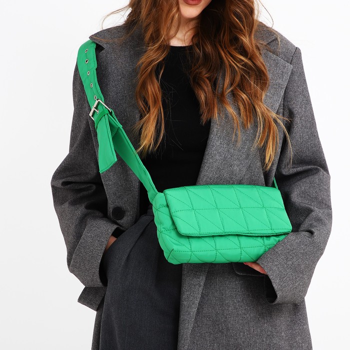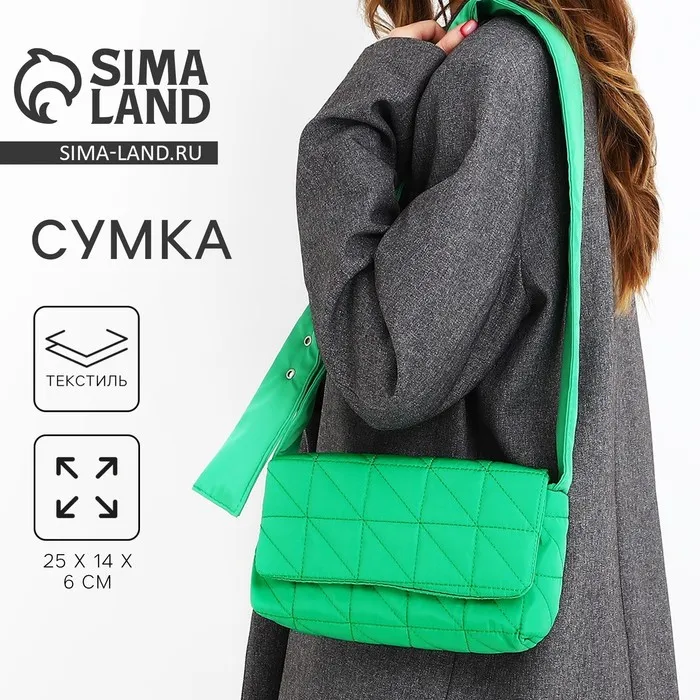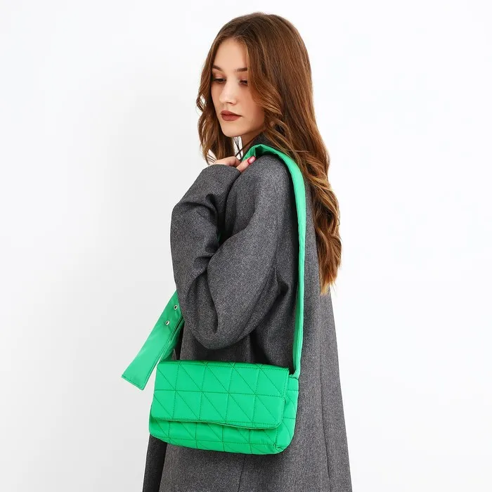 Сумка женская стеганная на плечо, отдел на молнии, 25×14×6 см, зелёная — Характеристики