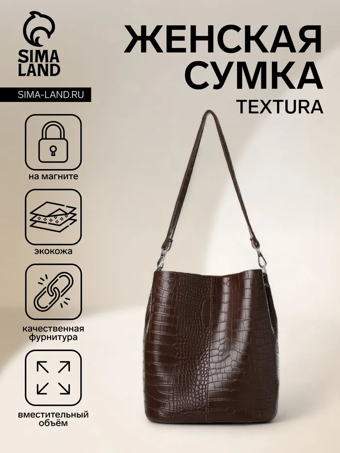 Сумка женская TEXTURA на магните, 24×14×29 см, коричневая — Характеристики