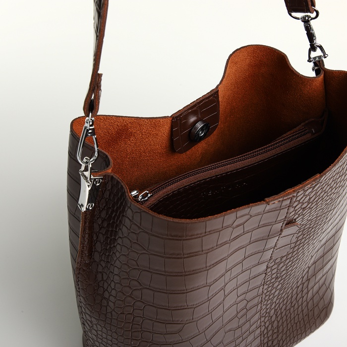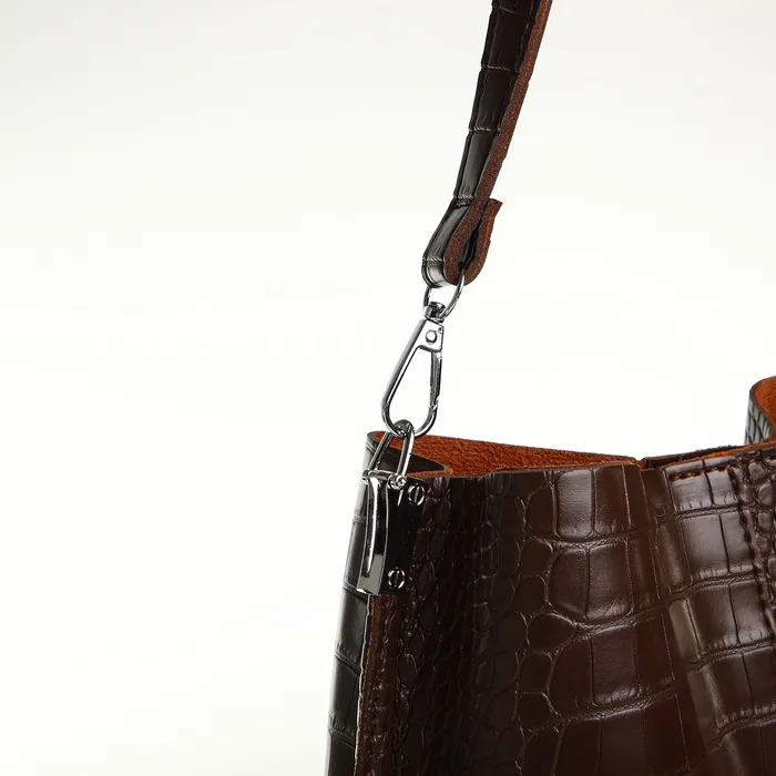 Сумка изготовлена из высококачественной искусственной кожи, что обеспечивает долговечность и легкость в уходе. Внутреннее пространство сумки организовано так, чтобы в ней помещалось всё необходимое, при этом сохраняется компактность и изящность формы. Магнитная застежка добавляет нотку удобства и безопасности, делая доступ к содержимому быстрым и простым.