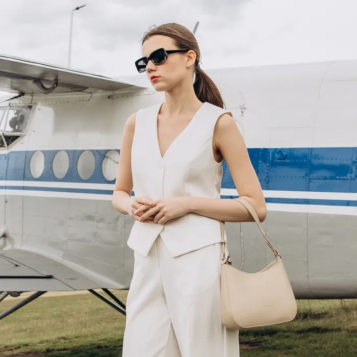 - Элегантный дизайн: бежевый цвет и строгие линии делают сумку универсальным аксессуаром для любых случаев жизни.